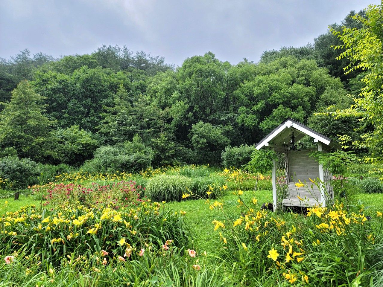 다리 건너자마자 어찌나 진한 꽃향기가 나는지 폭우 속에서도 향을 잃지 않더라구요~ 백합인 듯싶은 꽃들이 만개해 진한 향을 뿜어주고 있었습니다.