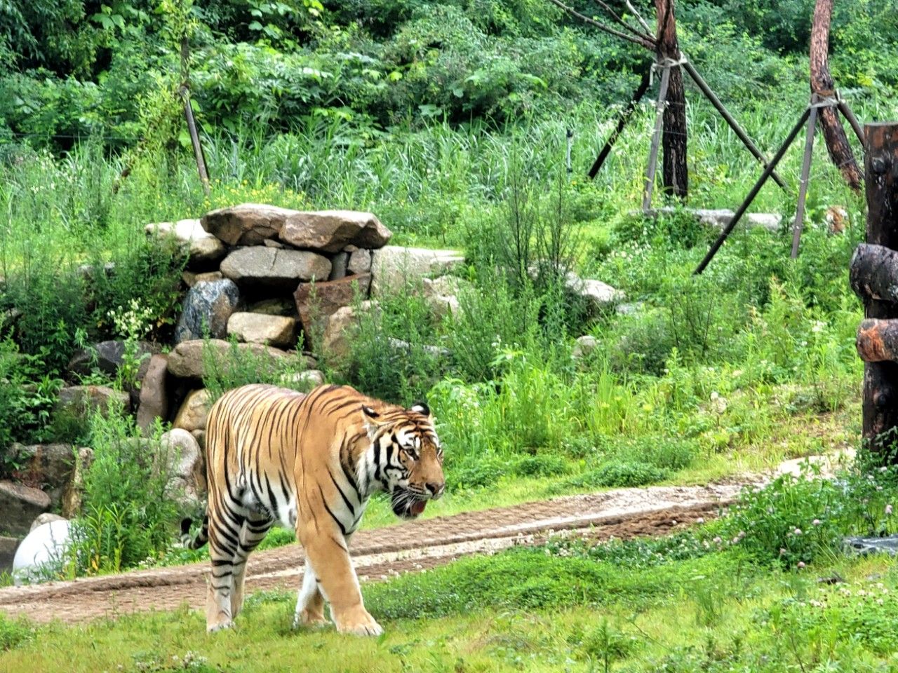 두 마리의 호랑이가 있었는데 덩치가 큰 한 마리만 관람객 앞으로 몇 바퀴 돌아주었답니다. 팬 서비스를 아는 호랑이 같았네요~ 땡큐!!