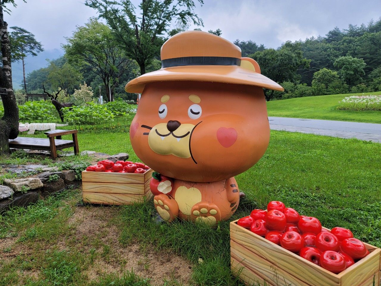 사과 먹는 호랑이 옆에 있는 피곤해 보이는 나무도 있더라구요~ 벤치에 언젠가는 앉으려나?