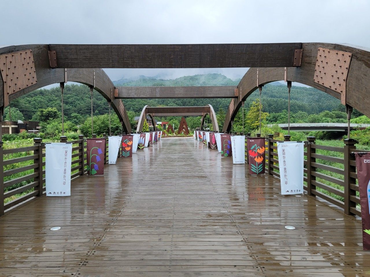 다리를 건너 들어가면 수목원 투어 시작입니다.