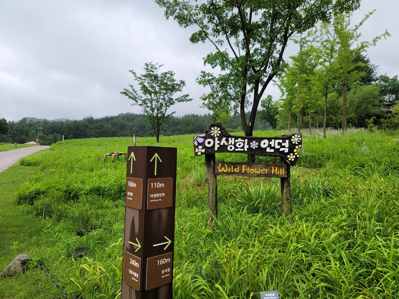 바로 야생화 언덕이 있습니다. 오른쪽으로 올라가면 암석원으로 바로 갈 수 있고, 왼쪽으로 가면 야생화언덕을 지나서 암석원으로 갈 수도 있더라구요~ 양쪽 모두 호랑이숲으로 갈 수 있습니다.