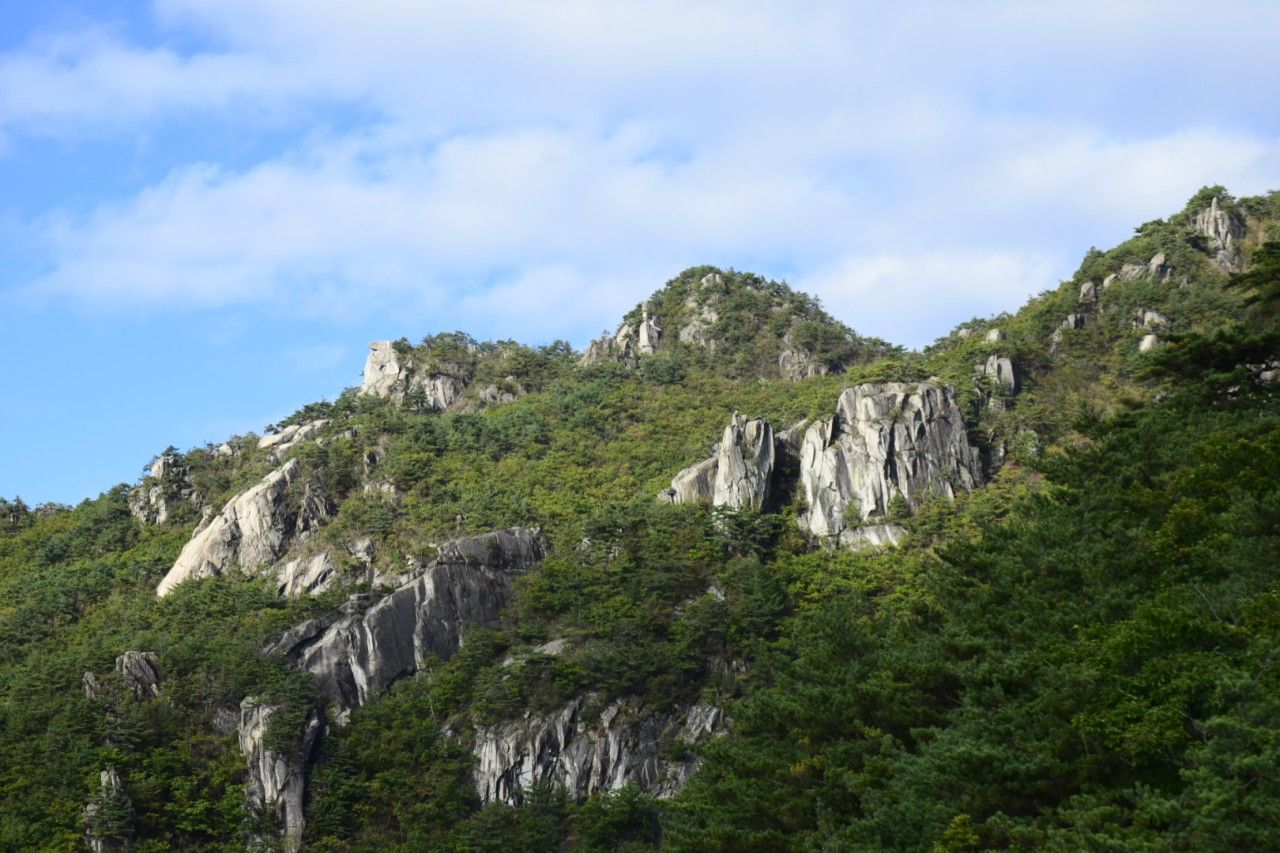 🔎 성주읍에서 27km가량 떨어진 곳에 있는 가야산으로 1972년 국립공원으로 지정되었습니다. 가야산 주봉은 칠불봉(1,433m)으로 가물어도 물이 마르지 않는다는 우비정과 산허리에 마애불입상(보물 222호)이 있습니다.