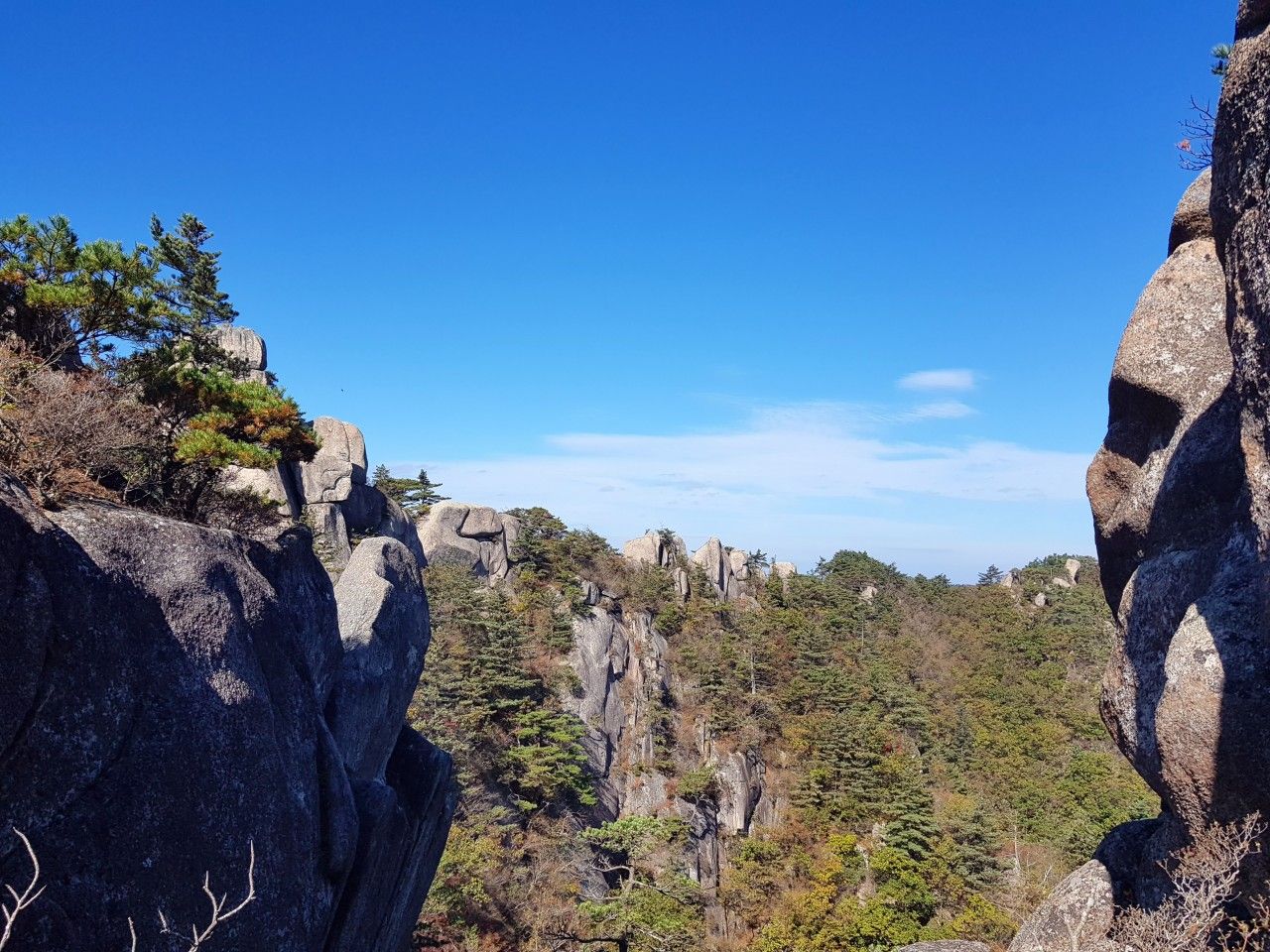 가야산국립공원은 경북 성주군과 경남 합천군의 경계에 있는 산입니다. 정상에는 기암괴석들이 즐비하고 특히 가을 단풍은 한 폭의 그림을 연상하게 한다고 합니다.