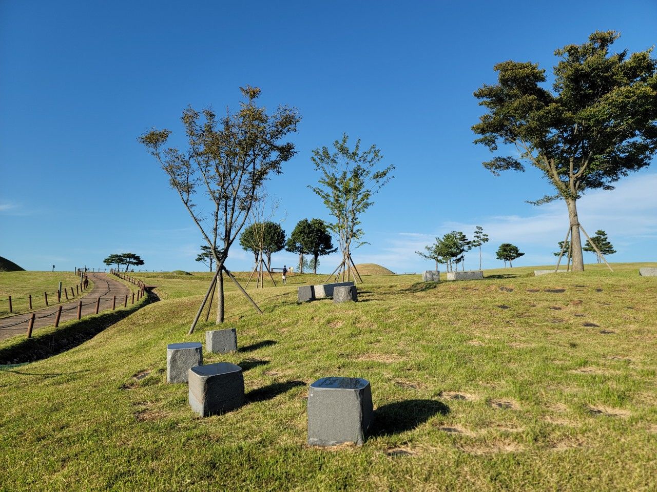 고분들 사이로 난 길이 아름다워 보였고요. 중간에 있는 까만 부분이 작약밭이랍니다. 봄에 방문하면 또 다른 아름다움을 볼 수 있는 곳이네요.