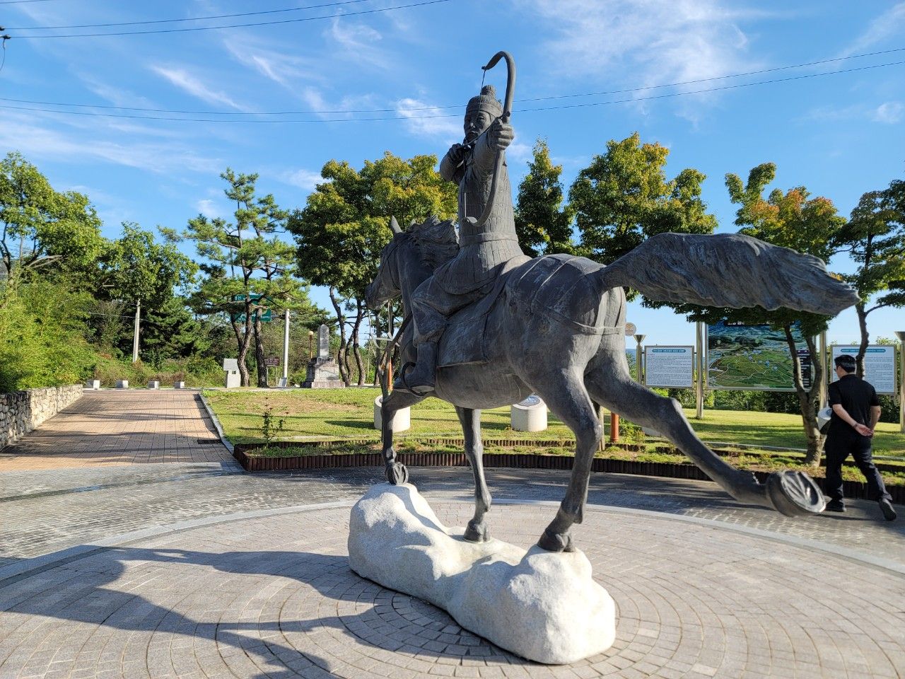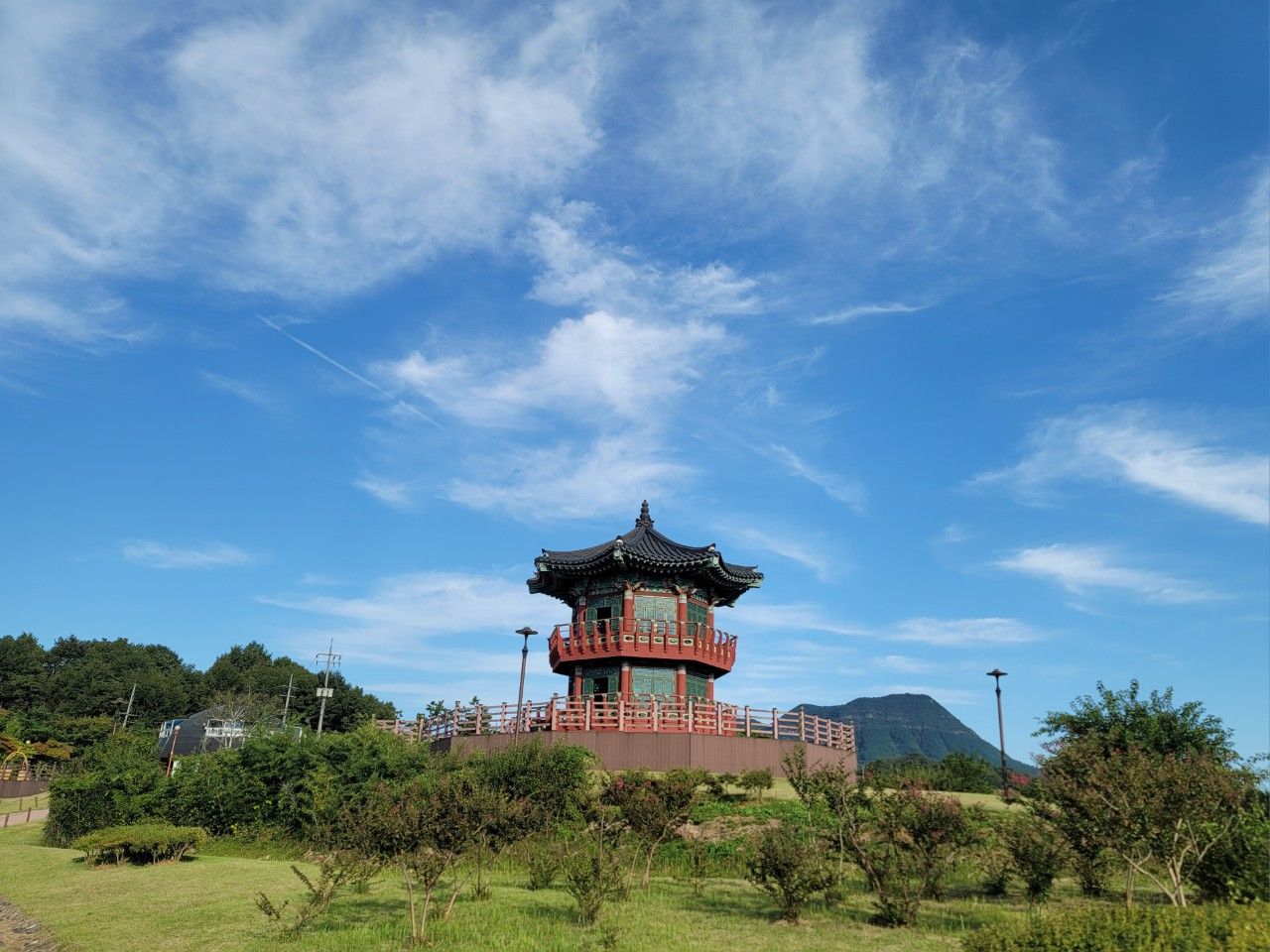 왼쪽에 보이는 둥근 지붕이 방문자센터, 누각은 조문정(전망대)입니다.