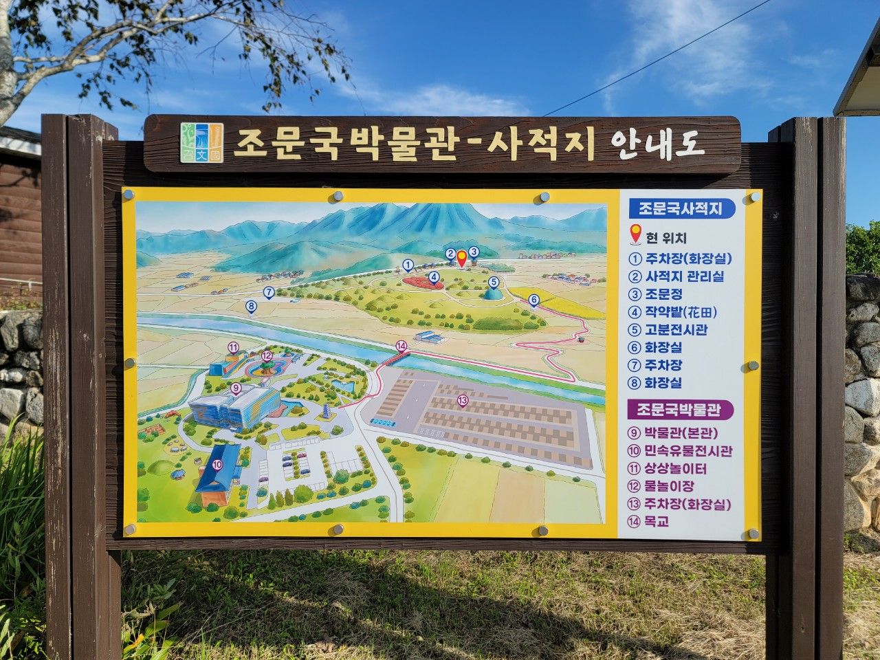 주차 후 입구에서 한눈에 조문국사적지가 내려다 보입니다. 방문자센터 먼저 들러서 안내 리플릿 챙기러 갔네요.