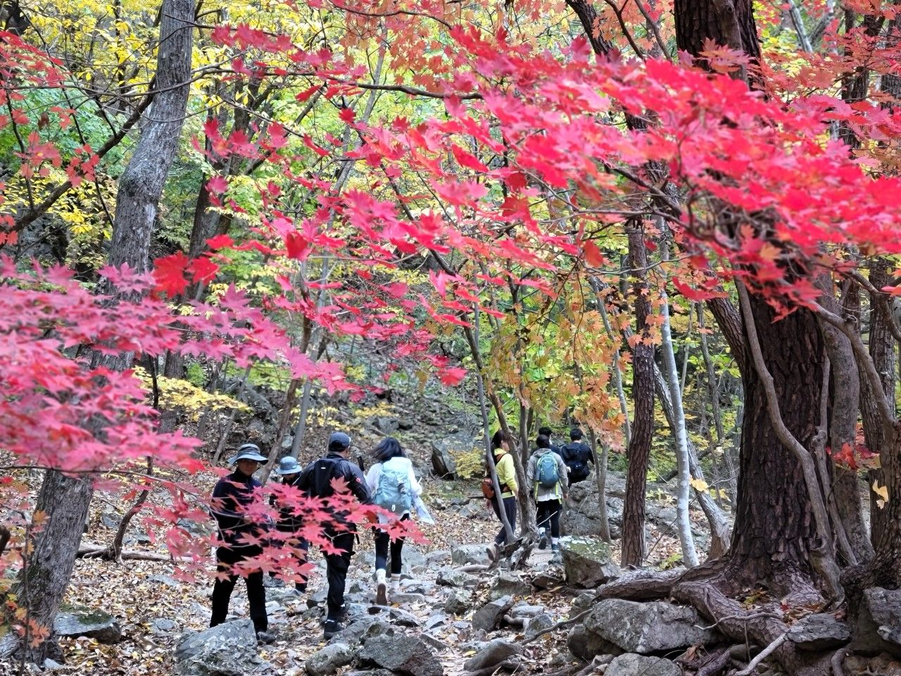 주산지를 내려와 절골계곡으로 단풍구경을 가보았습니다. 절골~가메봉 구간은 하루 1,350명 허용하여 사전 탐방신청을 통해 입장할 수 있답니다. 입장시간은 09:00~16:00로 국립공원공단 예약시스템을 통해 탐방예약 가능하며 현장에서도 가능합니다.