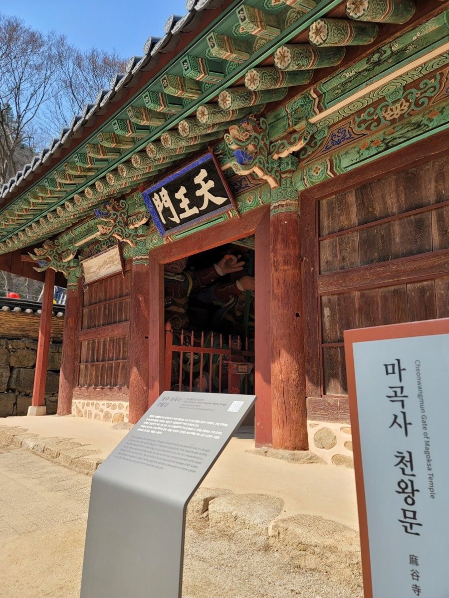 마곡사의 두 번째 관문인 천왕문입니다. 동서남북을 지키는 사천왕상이 모셔져 있습니다. 사천왕상은 언제 보아도 무서워 보이는데요. 인간들이 불도에 따라 바르게 살고 있는지 살피고 인도하는 역할을 수행한다고 합니다.