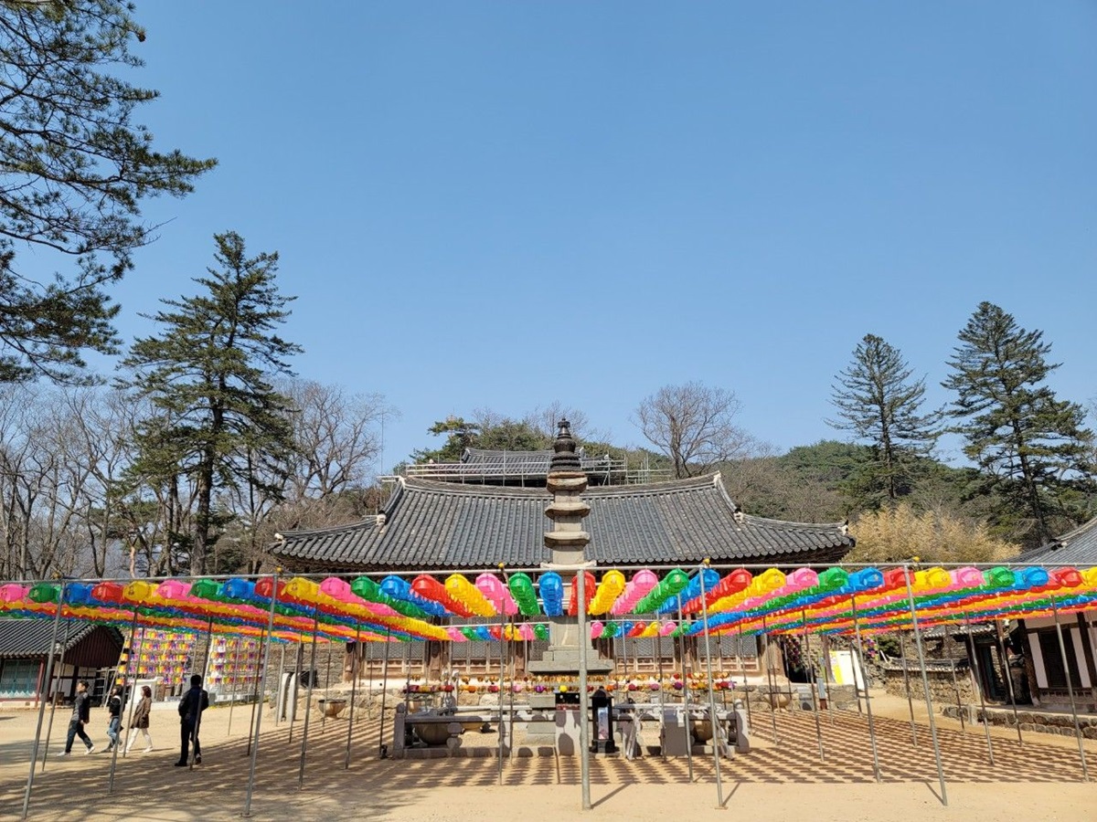 대광보전으로 들어가는 작은 다리와 부처님 오신 날을 준비하는 듯한 등불들도 알록달록 기분 좋게 해 주었네요.