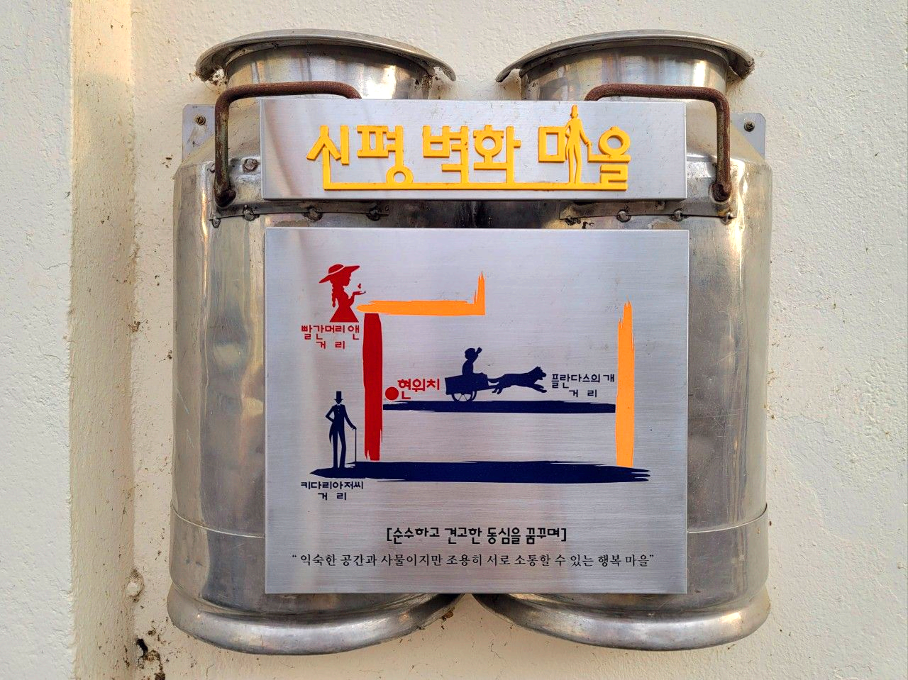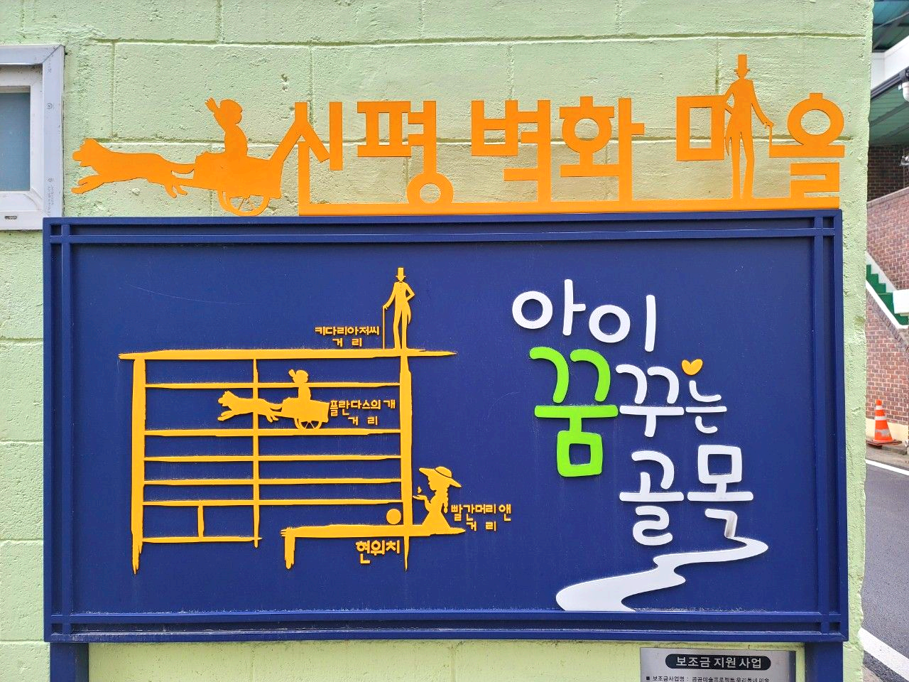 벽화는 신평 신기초등학교 앞으로 있는 마을 골목마다 주제를 정해 그려놓았는데요. 완성도가 높아 벽화 한점한점 볼 때마다 감탄이 절로 나고 어릴 적 보았던 만화 속으로 들어가는 기분이 들었습니다. 저와 함께 미리 가보실까요?