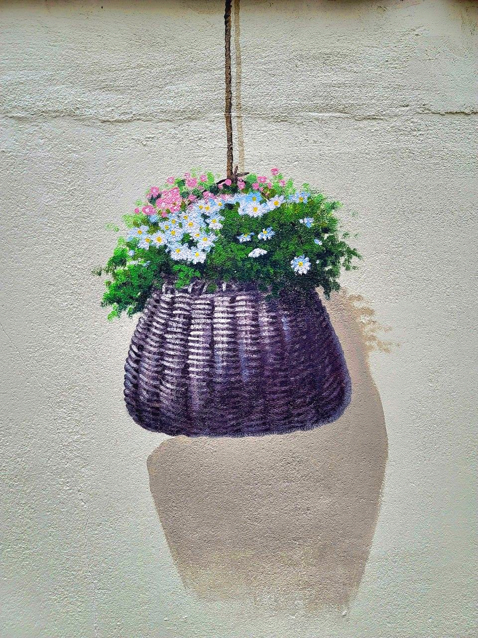 집 앞 정원에 화분이 가득한 집 벽에는 이쁘게 화분을 그려놓았네요. 실제 화분과 집과 너무나 잘 어울리고 사실적이어서 놀랐던 작품이기도 합니다.