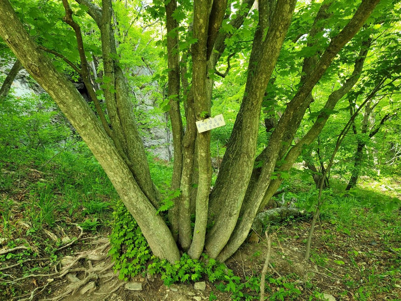 열여섯 쌍둥이 단풍나무입니다. 신기하게도 하나의 뿌리에서 여러 가지가 땅에서부터 시작됩니다.
