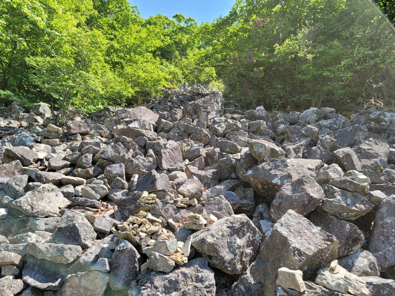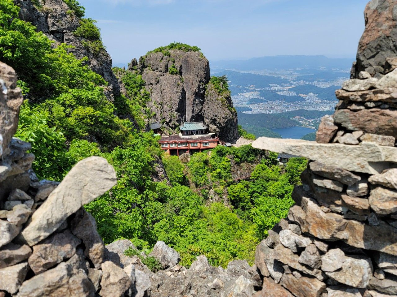 아슬아슬 돌탑이 쌓인 곳으로 조심히 올라가 보았습니다. 여기서 맞은편에 약사암이 보입니다.