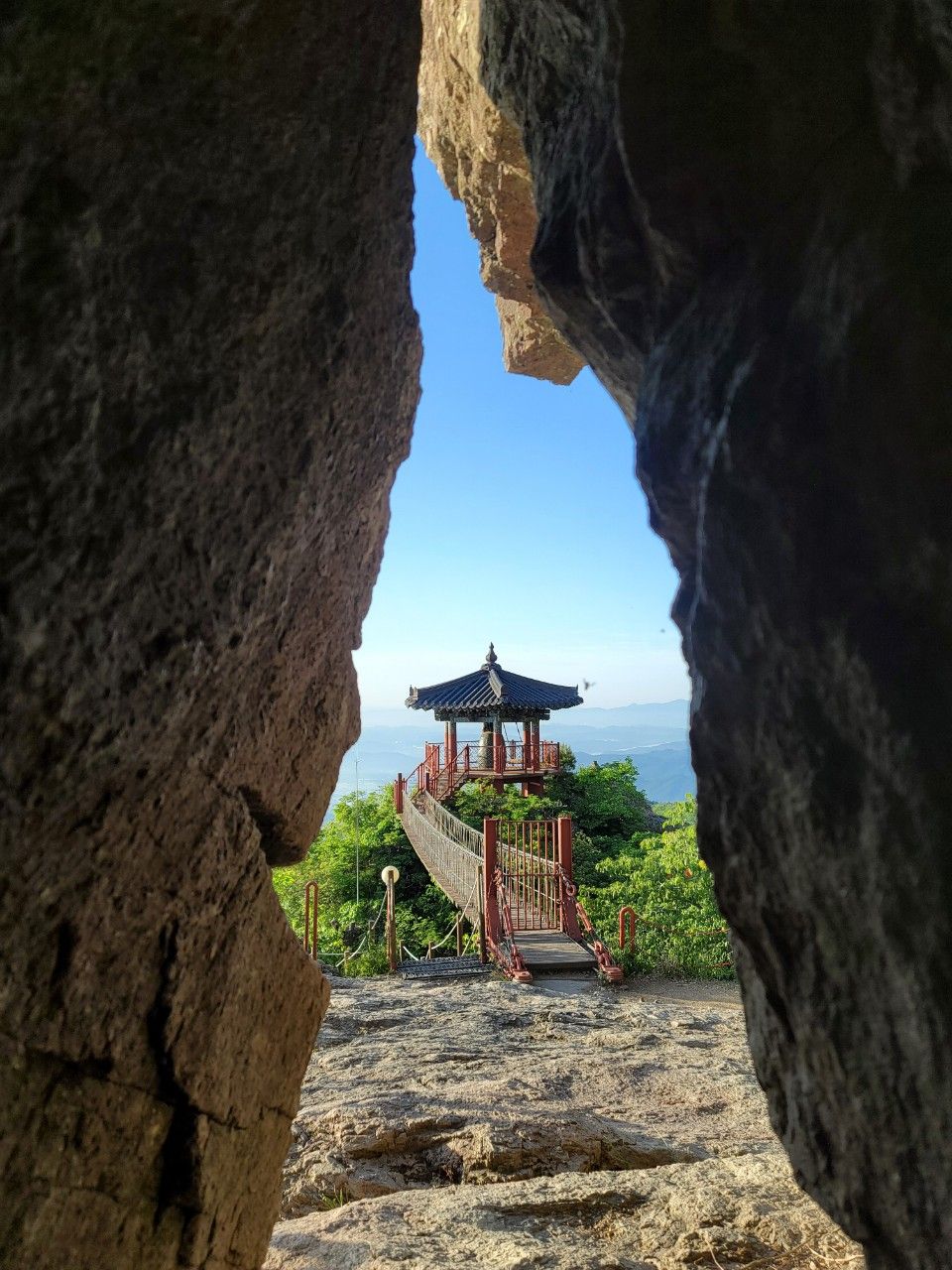 약사암 옆 작은 동굴 속에서 보이는 종각~~ 늘 닫혀있어서 바로 근처는 가볼 수는 없는 곳입니다.