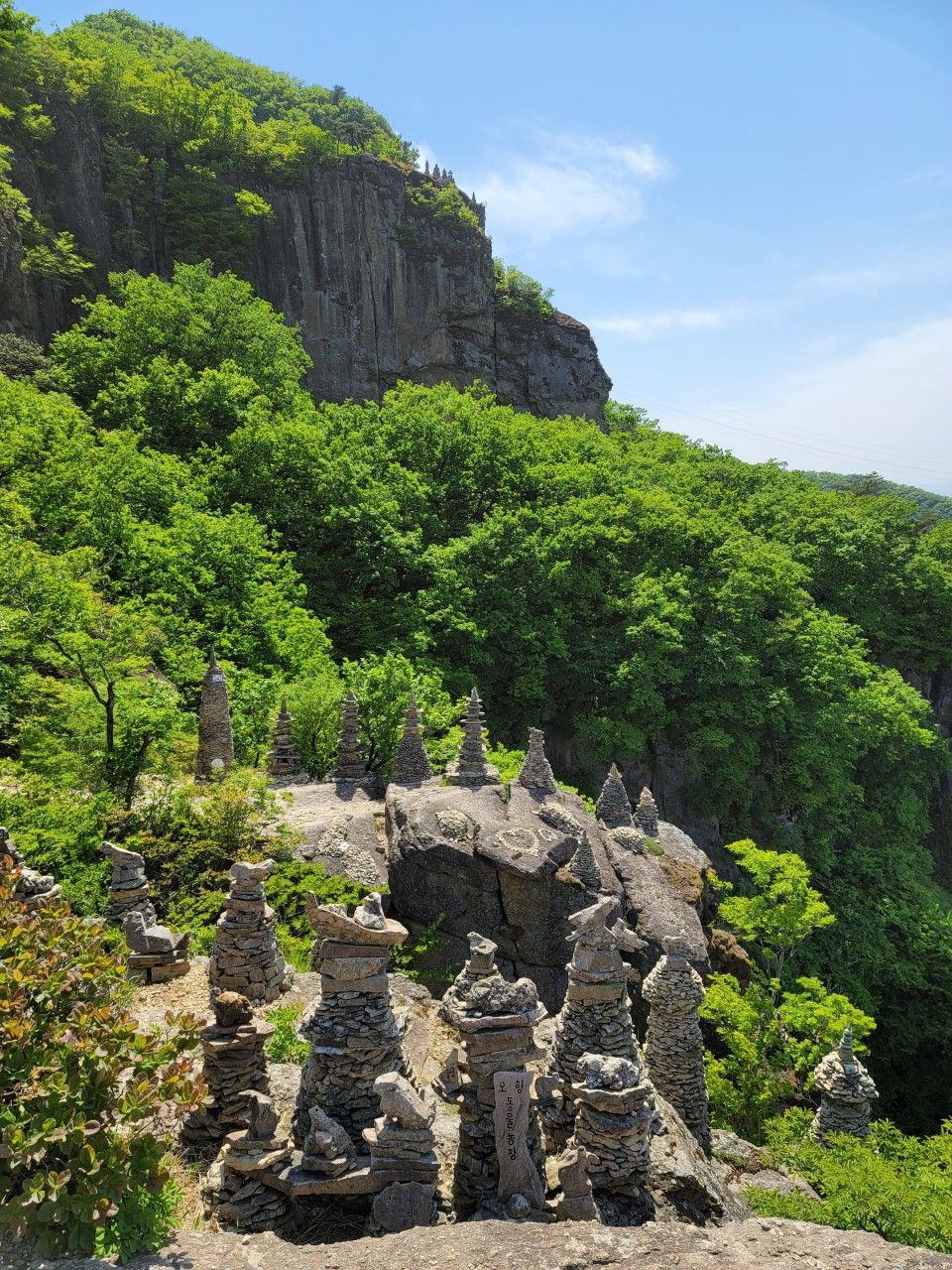아슬아슬 돌탑이 쌓인 곳으로 조심히 올라가 보았습니다. 여기서 맞은편에 약사암이 보입니다.