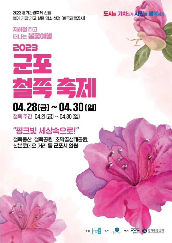 군포 철쭉축제가 4년 만에 군포시 일원에서 열립니다. 철쭉의 개화시기에 맞춰 4월 21일부터 30일까지 축제 주간으로 지정하고 4월 28일~4월 30일까지 다양한 축제프로그램들을 만나볼 수 있다고 합니다.