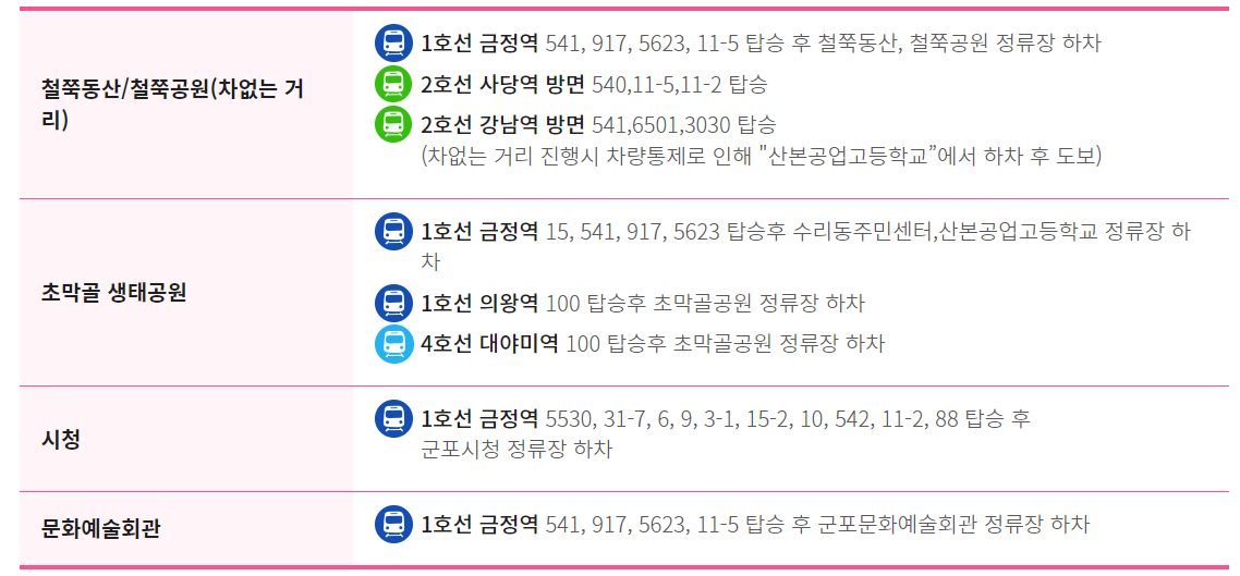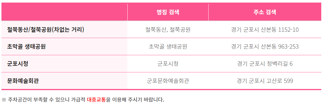 ○ 축제장소 : 군포시 일원(철쭉동산, 철쭉공원, 초막골생태공원, 산본로데오 거리 등)
