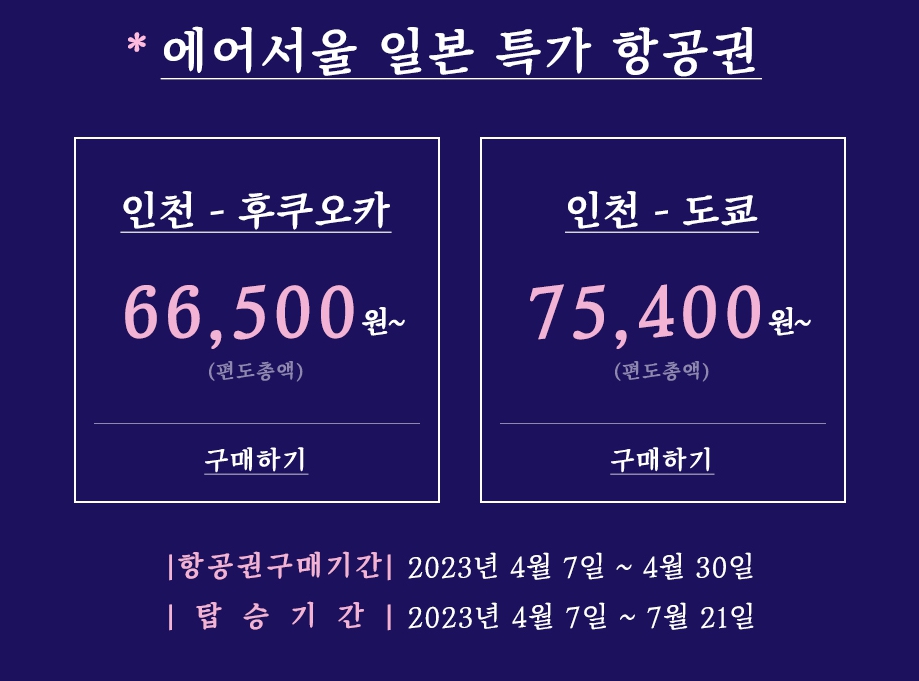 - 이벤트 내용 : 에어서울 일본 특가 항공권(최저 66,500원~)