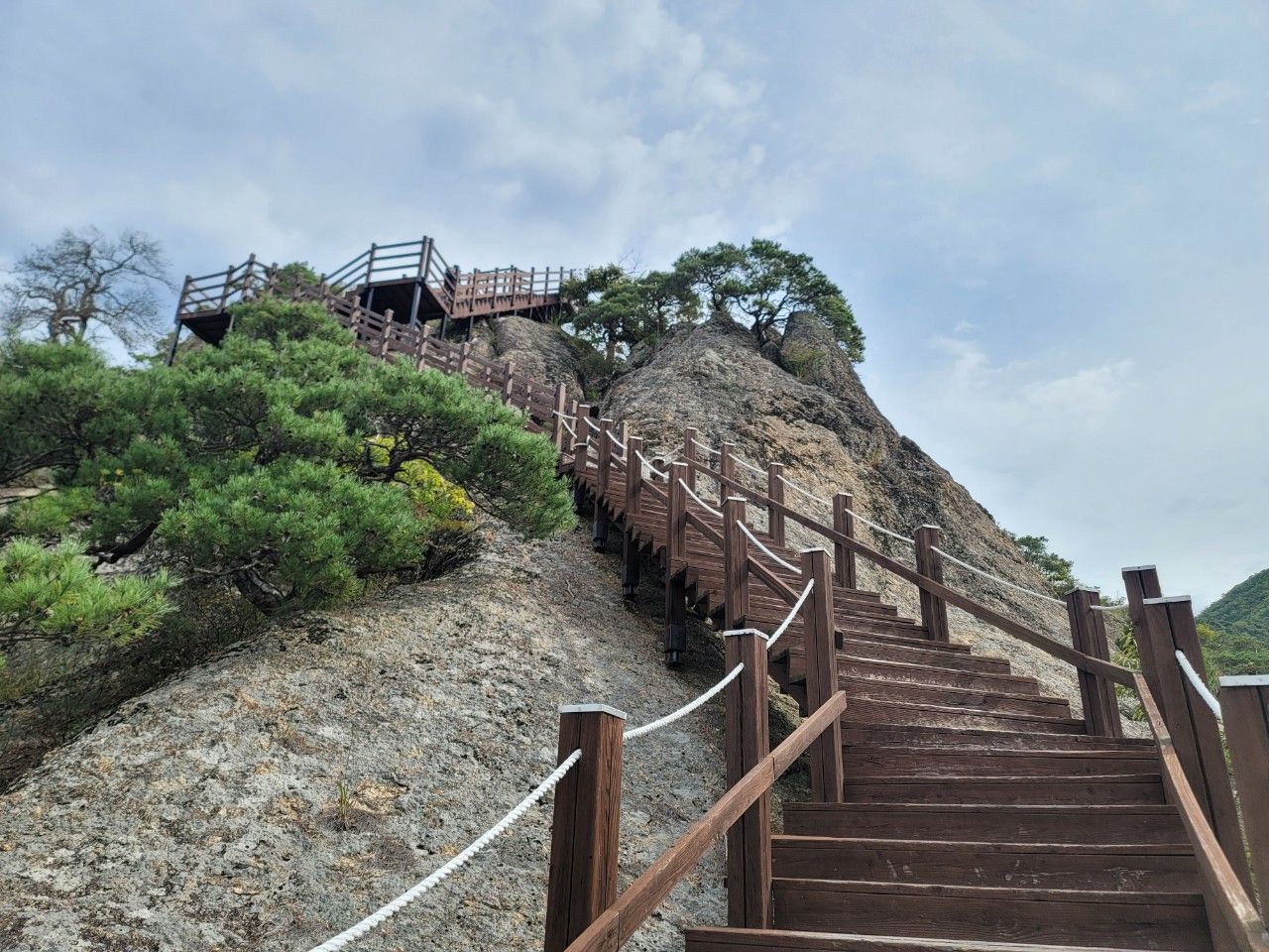 🔎 삼국유사의 일연국사의 시에서 높은 산 위에 또 높은 산이 있다는 의미로 아미로 불리게 되었다고 합니다. 뛰어난 경치의 암봉과 아미산폭포, 마당바위, 송곳바위 등 볼거리가 풍부한 곳입니다.
