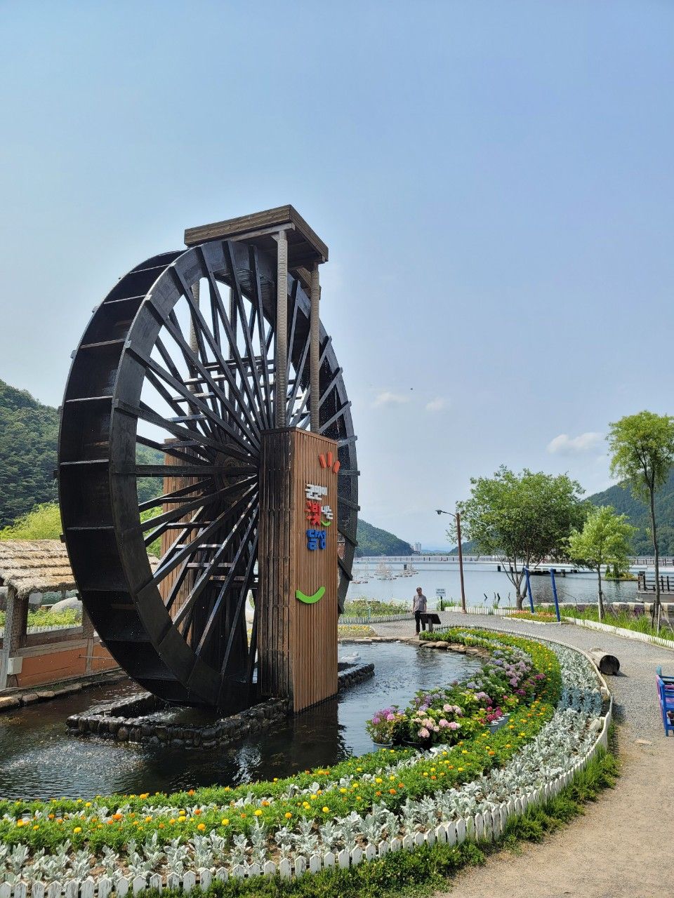 들어가자마자 보이는 아주 커다란 물레방아가 인상적이었습니다. 쉬지 않고 돌아가는 물레방아 근처에서 쉬고 계시는 분들도 있었고 편안해 보였네요~작은 해바라기 꽃밭도 아주 예뻤답니다.