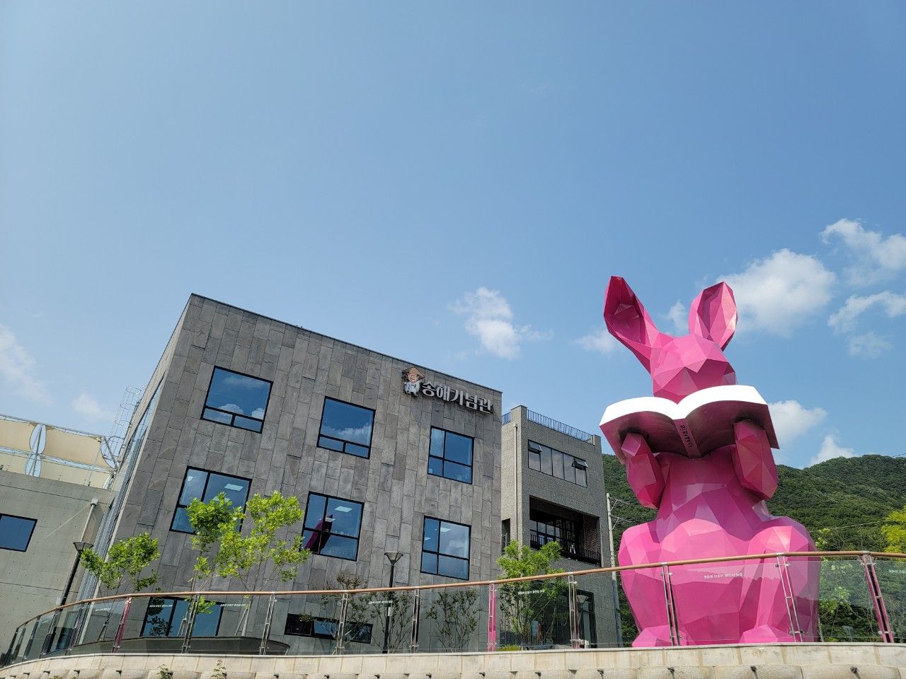 송해공원의 상징인 것 같은 핑크 대왕 토끼 조형물도 있었는데요~ 지금 사진을 보니 무슨 책을 읽고 있는지 궁금하네요~ 혹시 아시는 분 댓글 남겨 주세요^^