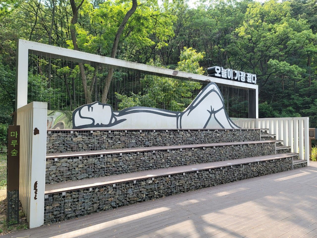 마루숲이라고 하네요~ 저 위에 누워서 쉬어도 좋은가 봐요^^ 오늘이 가장 젊다는 말이 딱 와닿습니다. 정답!!!