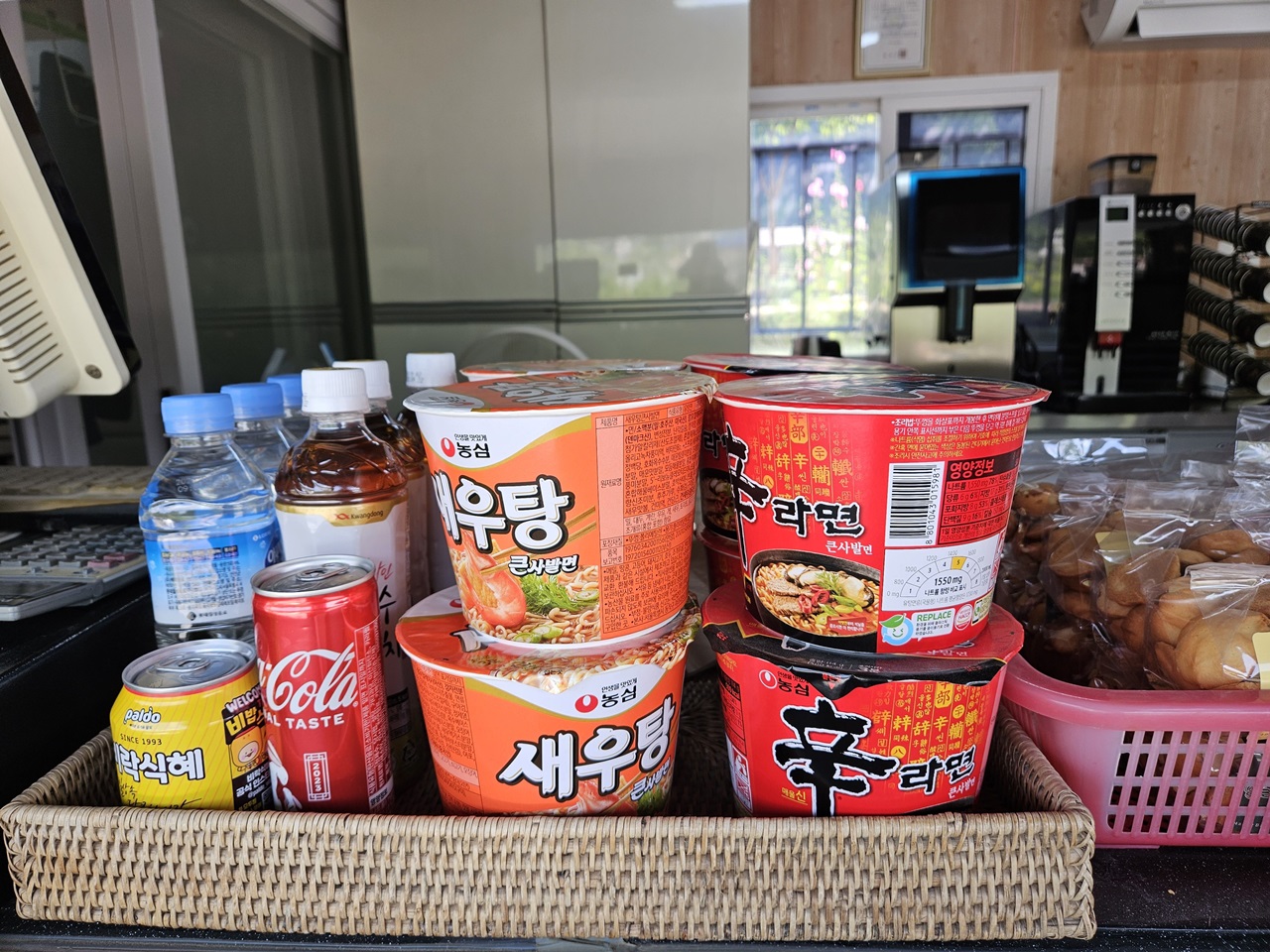 컵라면과 물, 음료수, 쿠키 등도 팔고 있었어요~