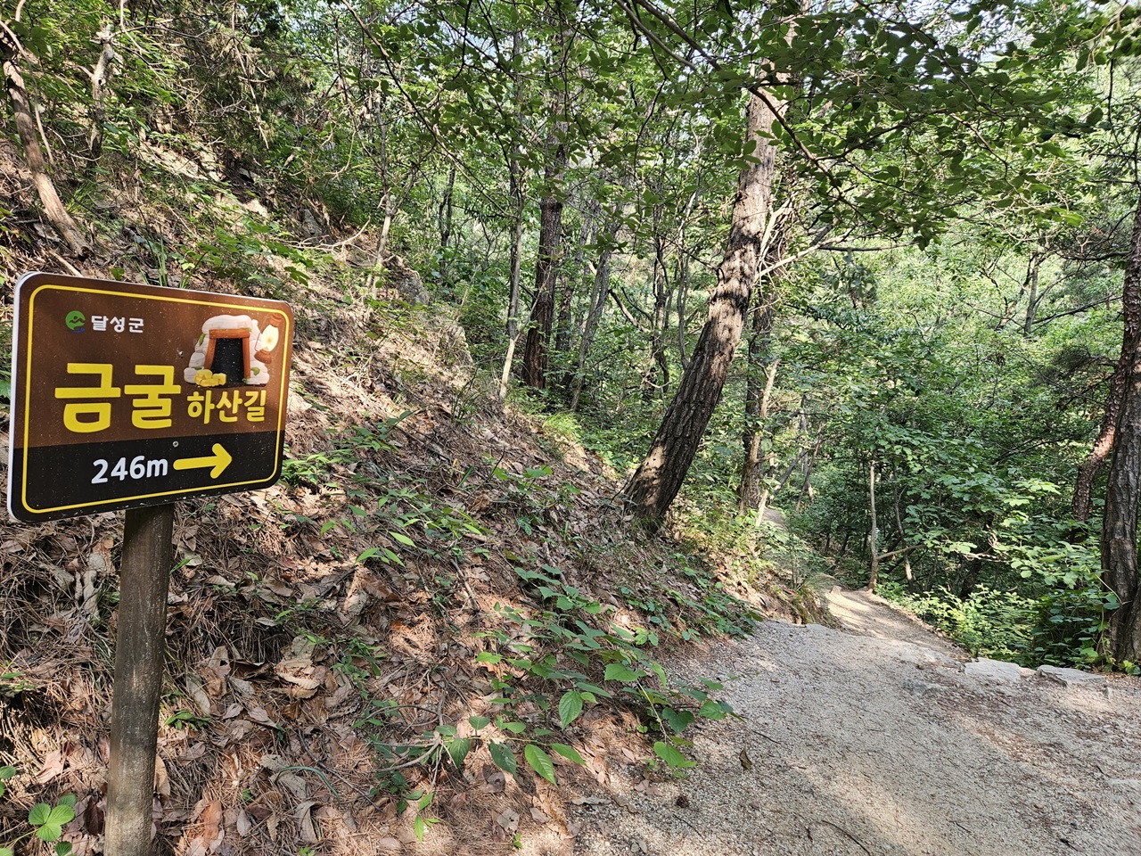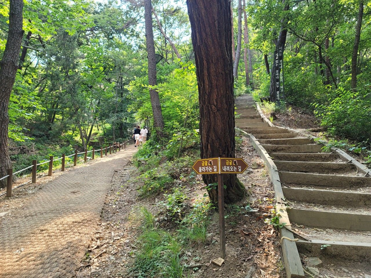 하산길로 내려가면 됩니다. 내리막 경사가 조금 있는 편이라 조심해서 내려가세요~