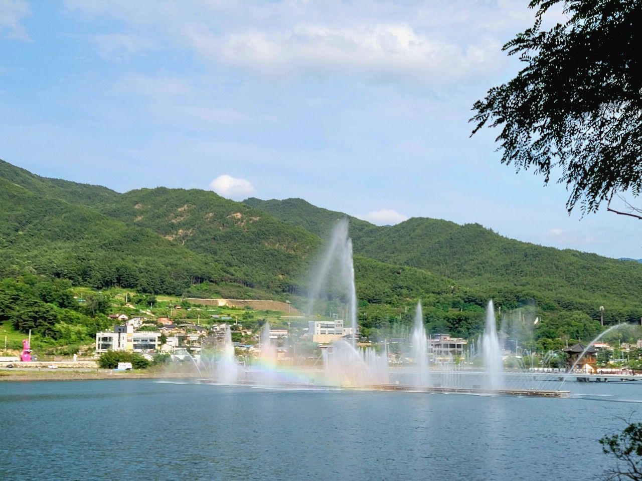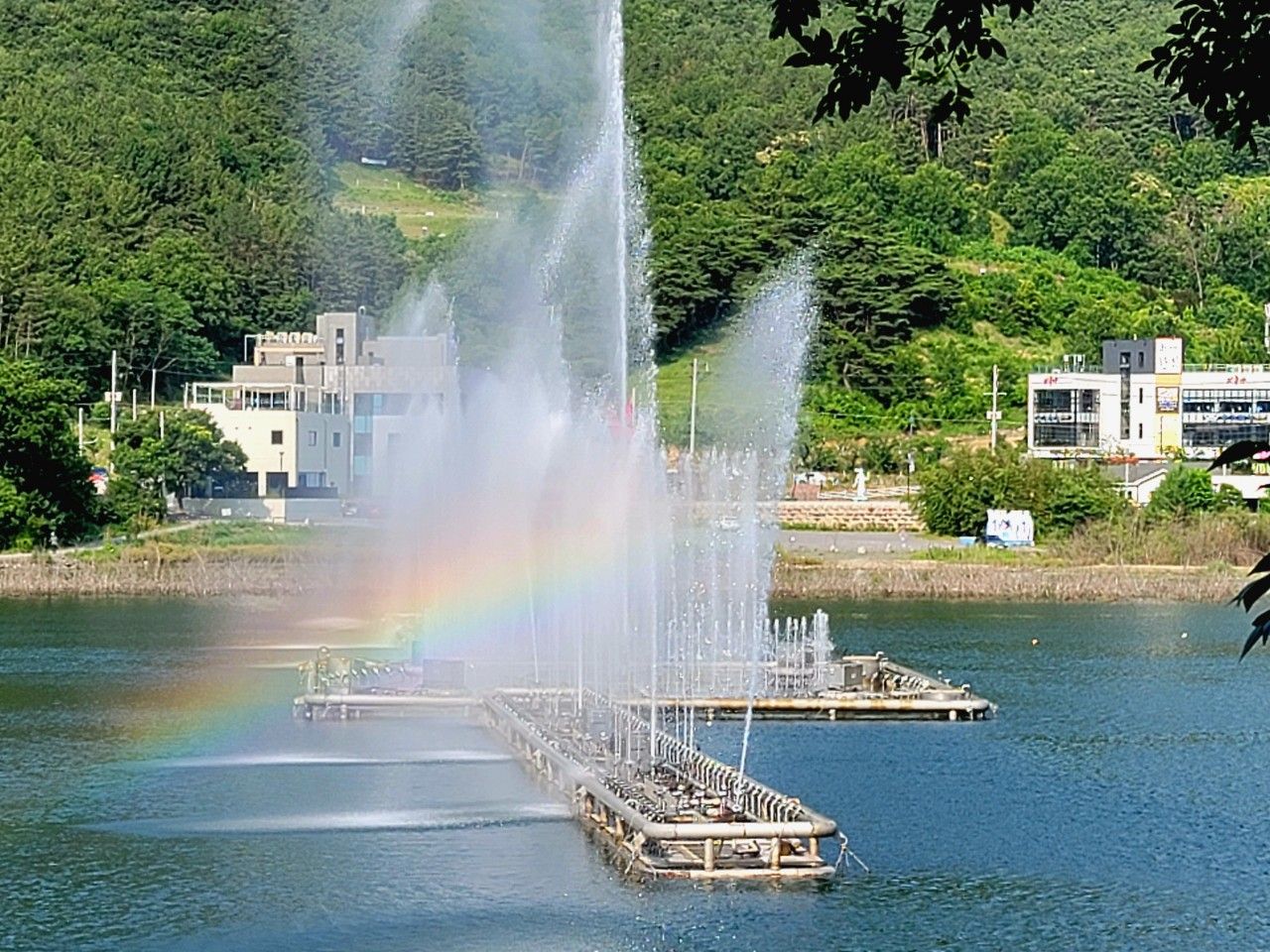 무지개도 보이고 시원한 분수가 나오고 있어서 보기 정말 좋았습니다.