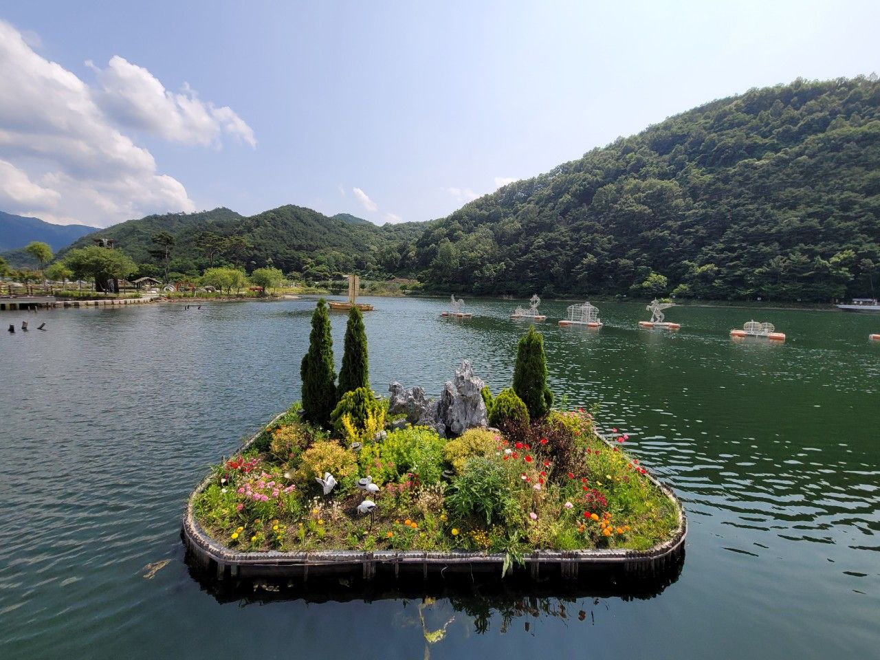 작은 섬도 하나 있었구요~ 뒤로 보이는 조형물들도 밤 산책에 보면 아주 이쁠 것 같았습니다.