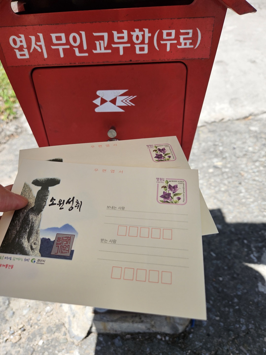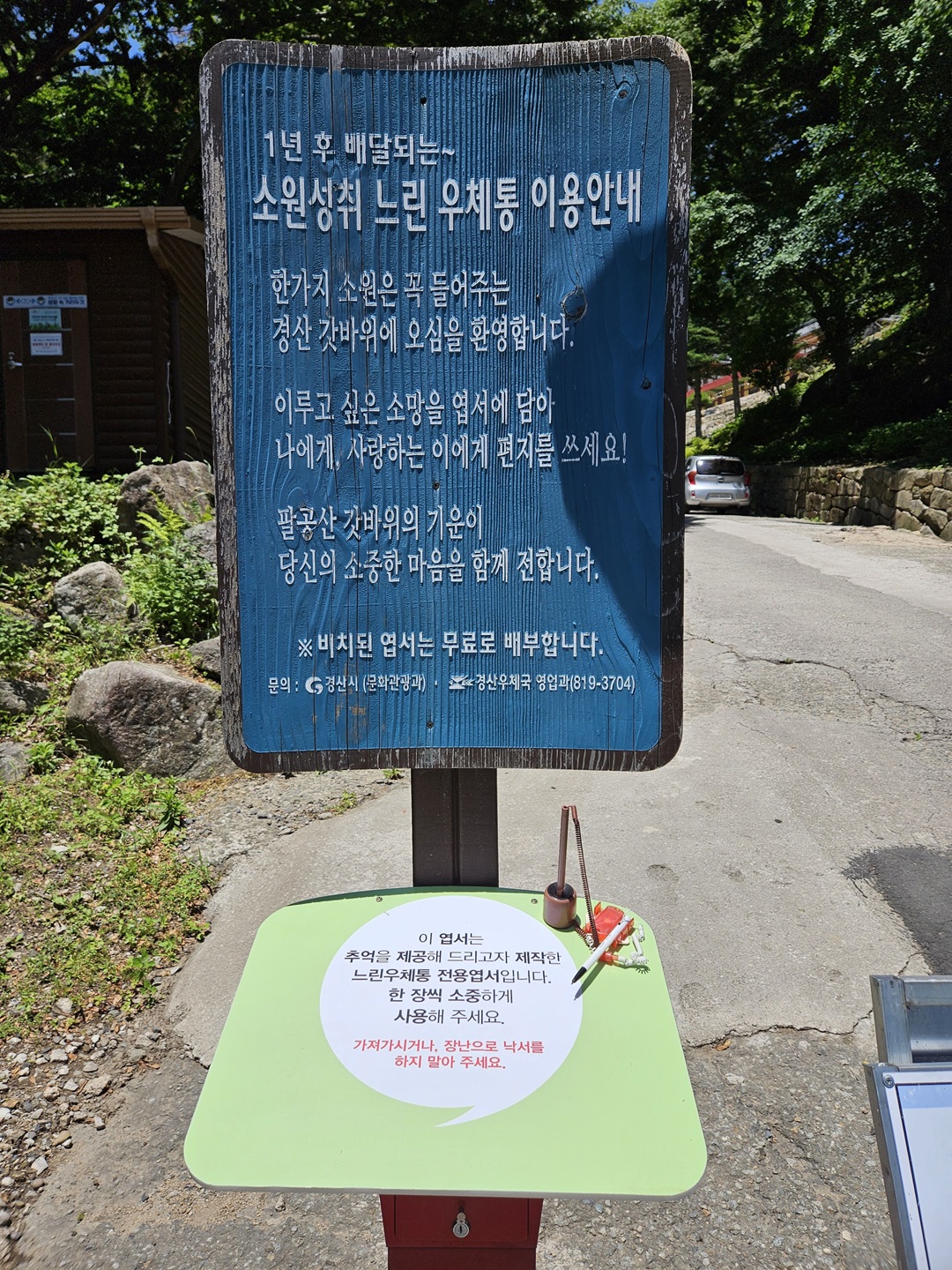 셔틀버스 기다리며 소원성취 느린 우체통에 엽서도 써서 넣어보았습니다. 이루고 싶은 소원을 담아 쓰면 된다고 합니다.