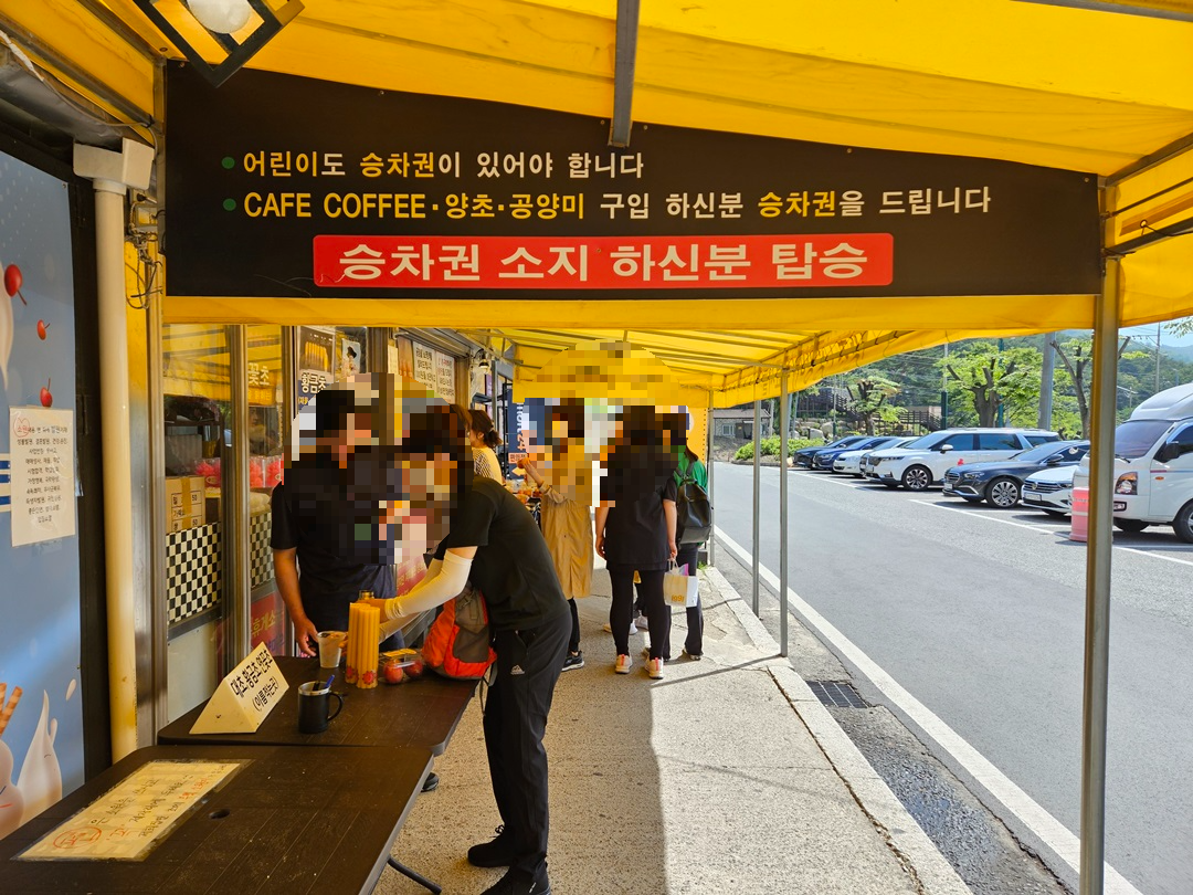 걸어서 가도 괜찮지만 산행이 초행인 지인도 있어 최대한 체력을 아끼기 위해 셔틀버스 탑승하기로 했습니다.