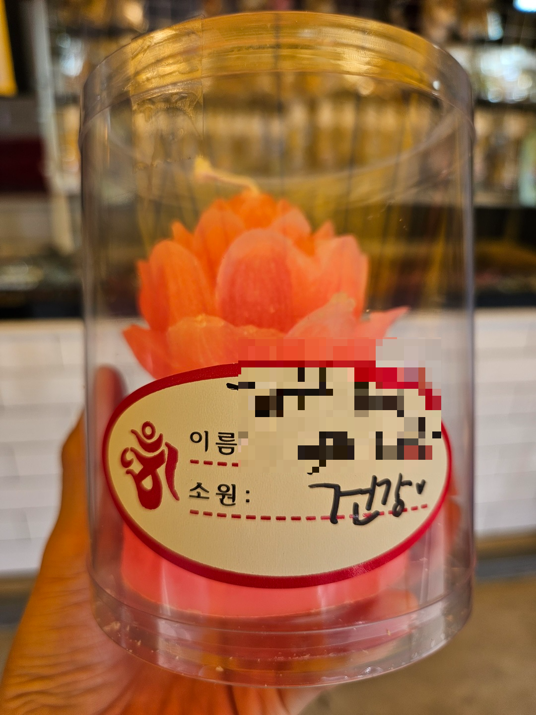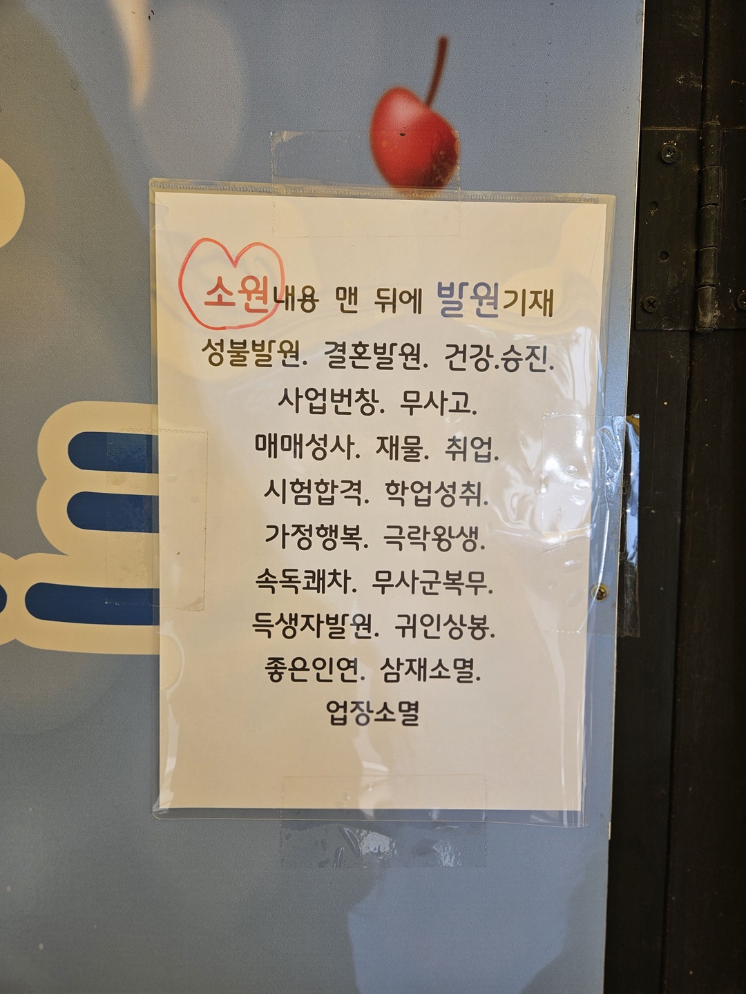연꽃초 구매 후 가족의 이름과 소원 한 가지를 썼구요. 가게 옆 벽에 소원 발원기재 내용도 친절하게 안내해주고 있었답니다.