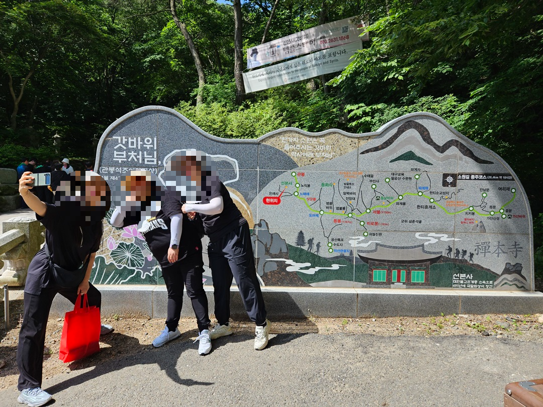 평소 산에 오를 일 없는 귀여운 동생들^^ 인증샷 찰칵 남겨주시고~~ 갓바위로 출발합니다.