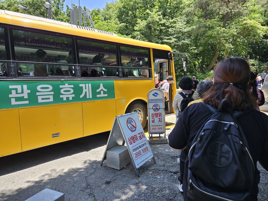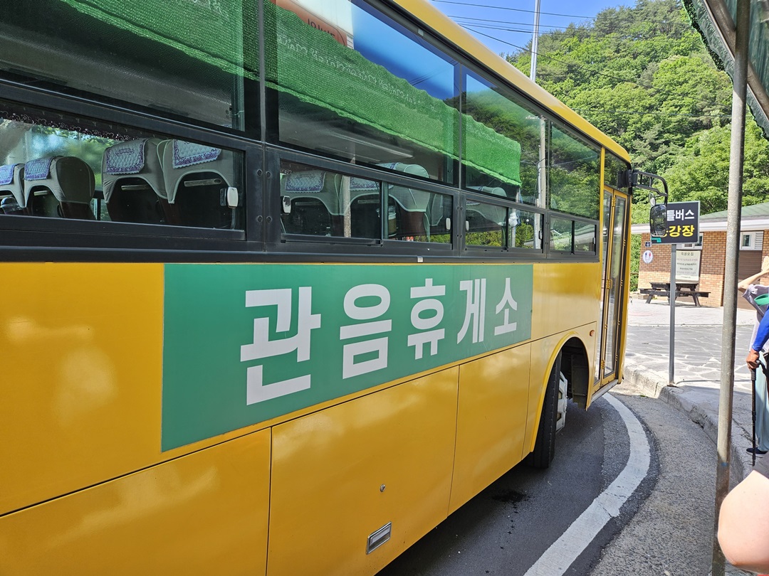 관음휴게소 가는 셔틀버스가 도착했습니다. 시원하게 앉아 주차장에 도착하며 팔공산 갓바위 일정을 마무리했습니다.