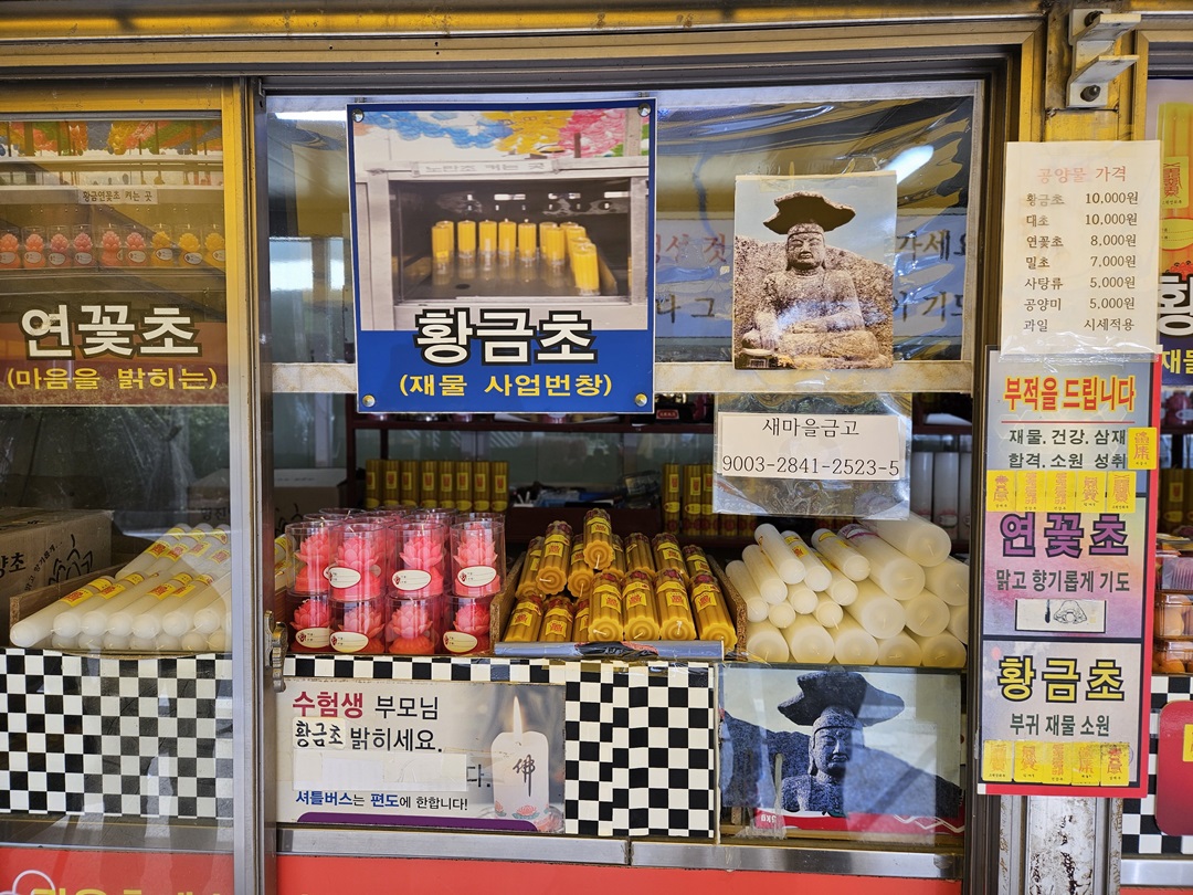 공양초도 아주 다양하게 준비되어 있었는데요. 황금초나 대초는 10,000원, 연꽃초 8,000원, 밀초 7,000원, 사탕류와 공양미 5,000원이었구요.