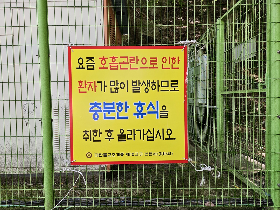 계단이 계속 이어지고 날도 뜨거워서인지 '호흡곤란'이라는 단어가 크게 느껴졌답니다. 천천히 걷고 쉬어가면서 올라가니 크게 어렵지 않았는데요~날이 점점 더워지고 있으니 올라가시는 분들은 자신만의 속도 잘 조절하셔서 안전하게 다녀오시기 바랄게요~