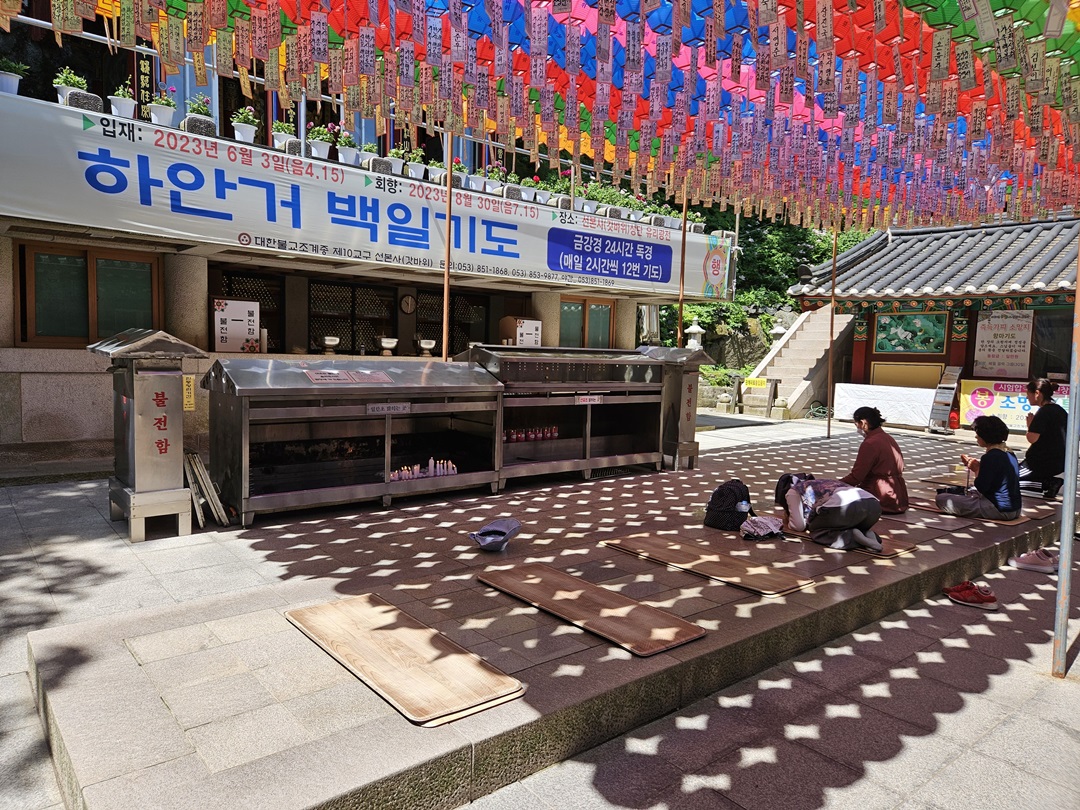 하안거 백일기도기간이라고 합니다. 하안거는 벌레가 많은 여름철 스님들께서 외출을 금하고 참선을 하는 기간을 이야기한다고 해요~잠시 쉬는 동안 스님의 경전 소리가 계속 들렸습니다.