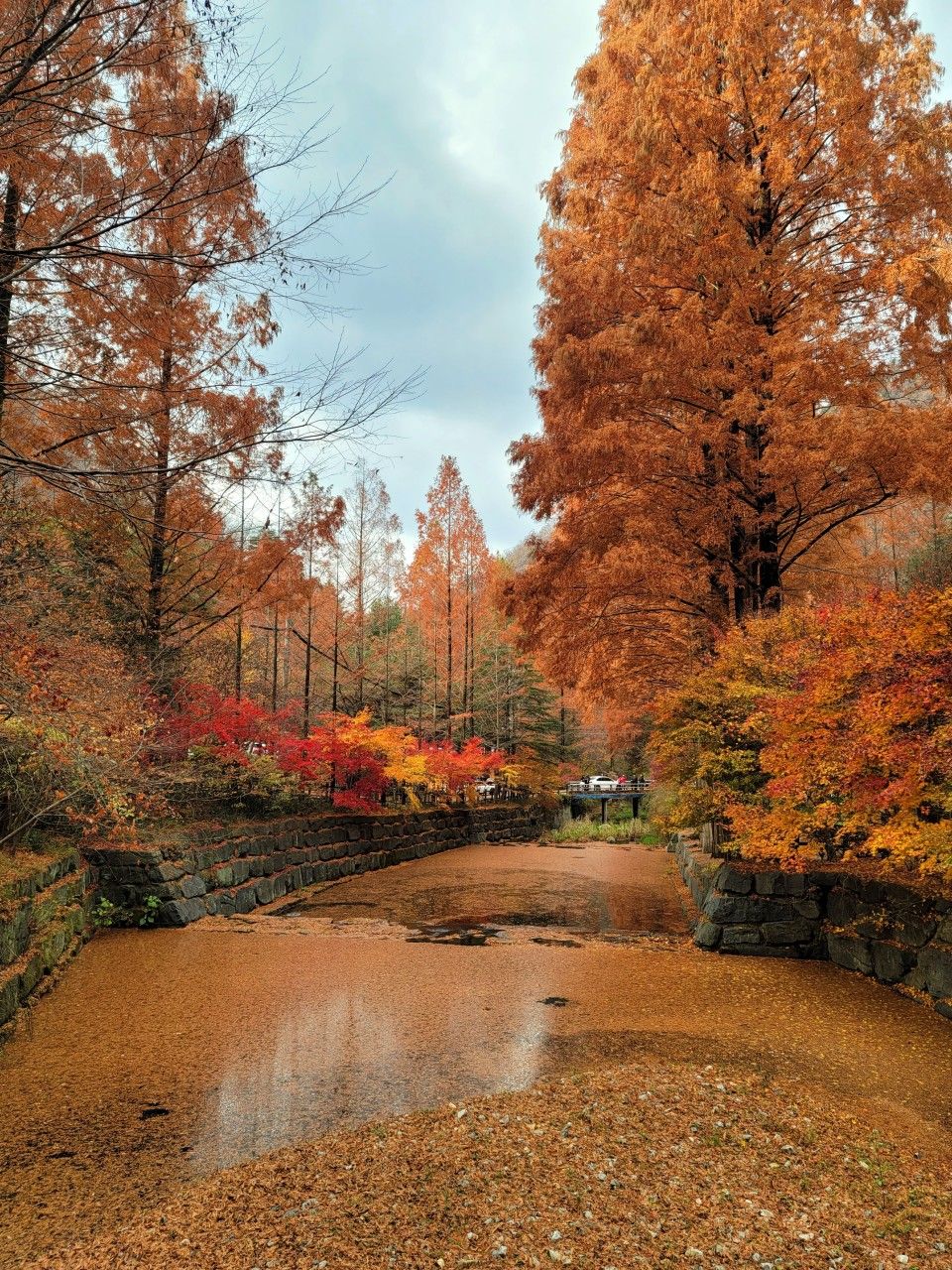 메타세콰이아 잎들이 무수히 떨어진 물 위를 보니 가을느낌 제대로였구요.