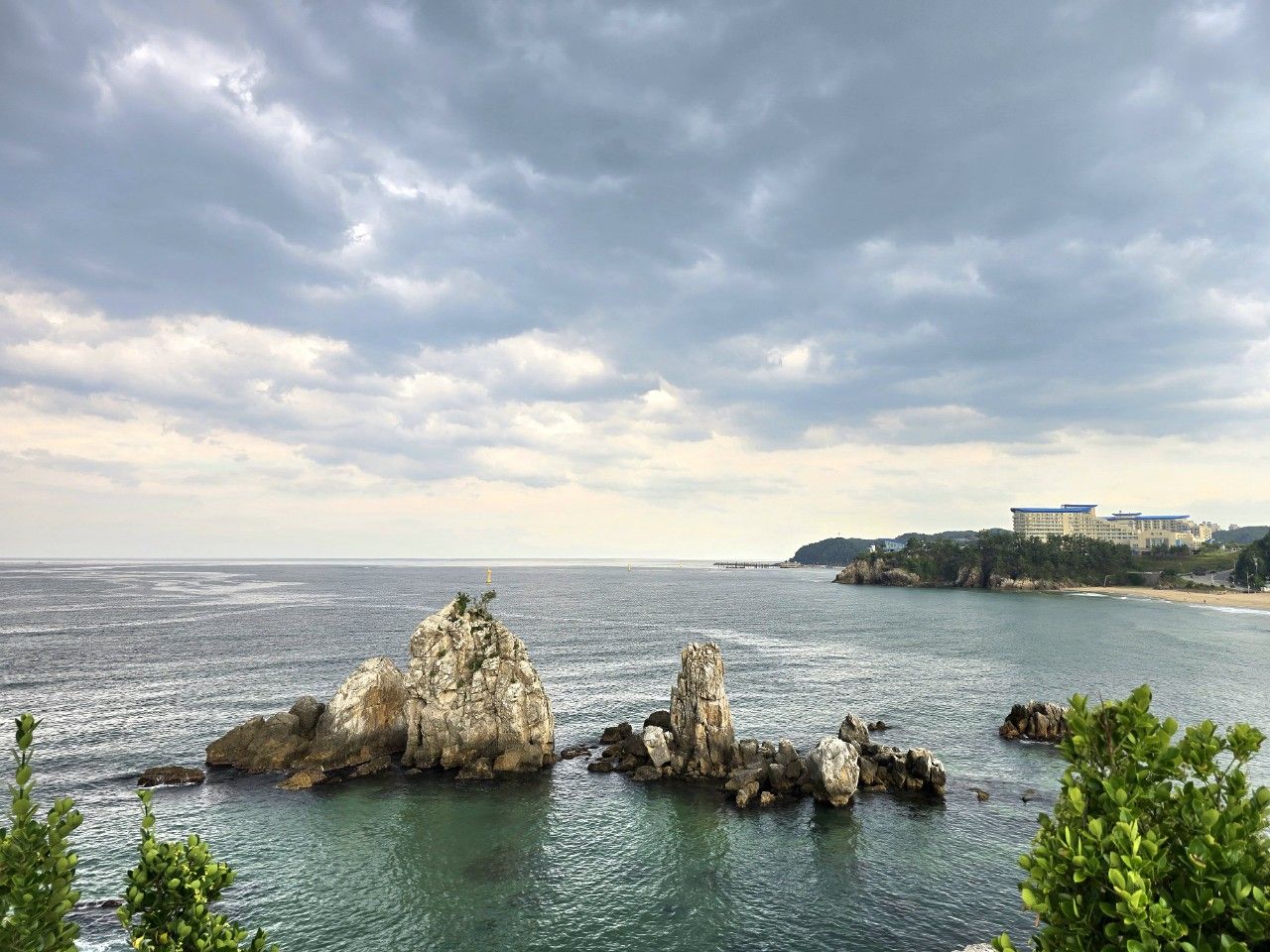 🔎 동해시의 명소로 수중의 기암괴석들이 절경을 이루는 곳입니다. 해돋이 명소이기도 하며 애국가 첫 소절의 배경화면으로도 자주 나오는 곳입니다.