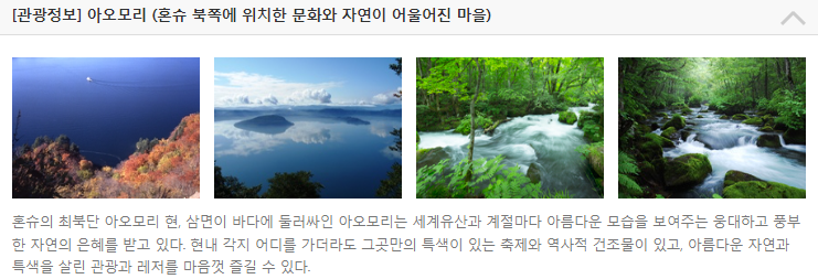- 선택관광(유료) : 도와다 유람선, 오이라세 계류코스, 아오모리 시내 관광, 아오모리 히로사키 역사탐방 관광, 아오모리 반일관광