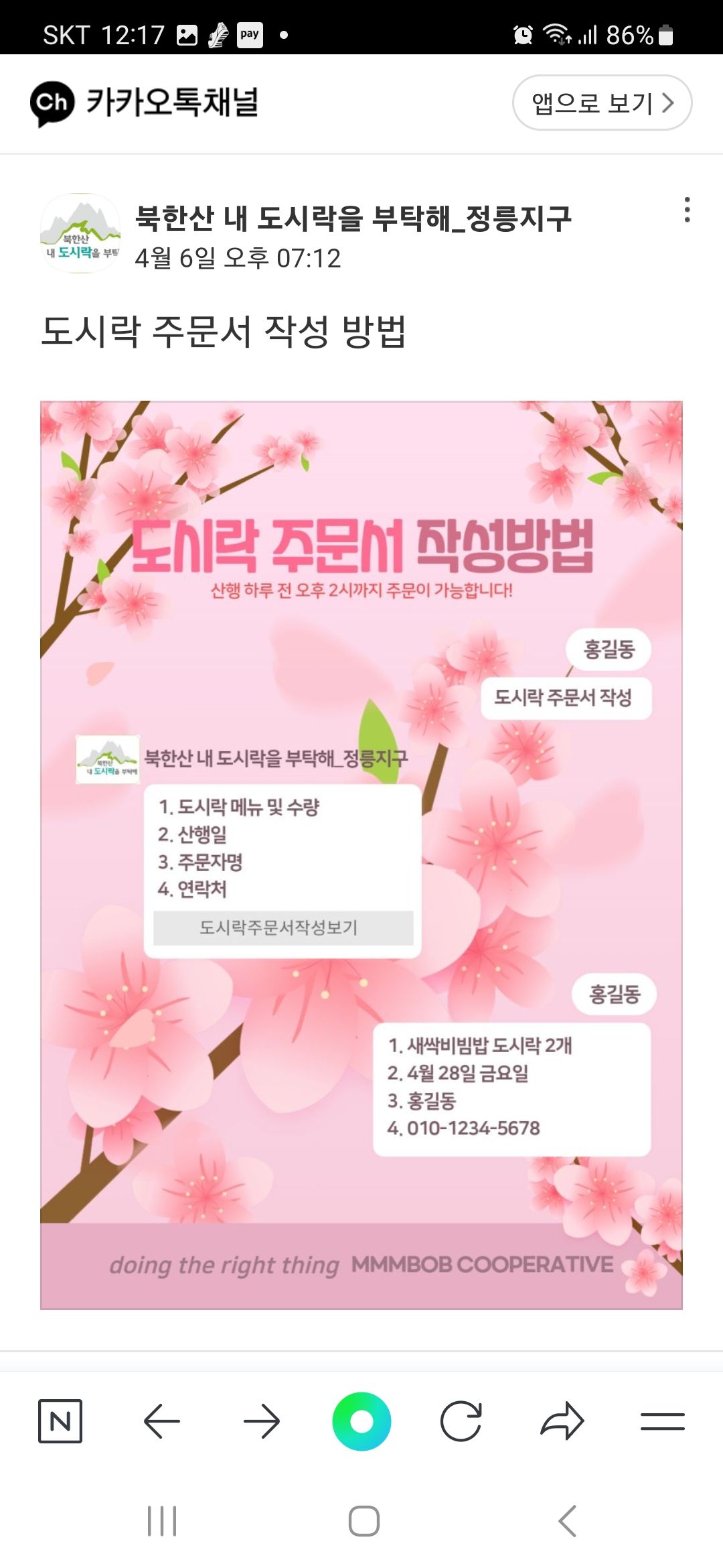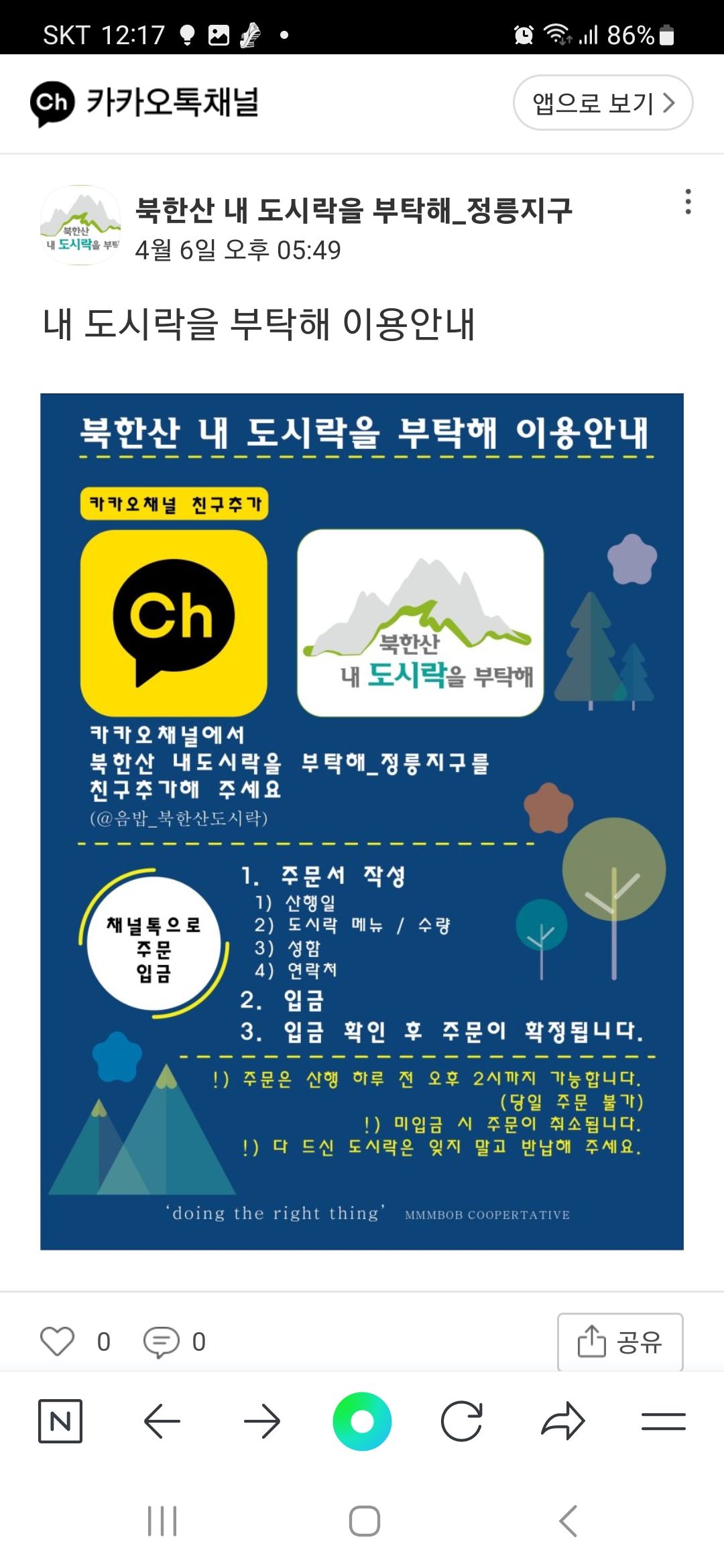 북한산국립공원 친환경 도시락 서비스 주문방법
