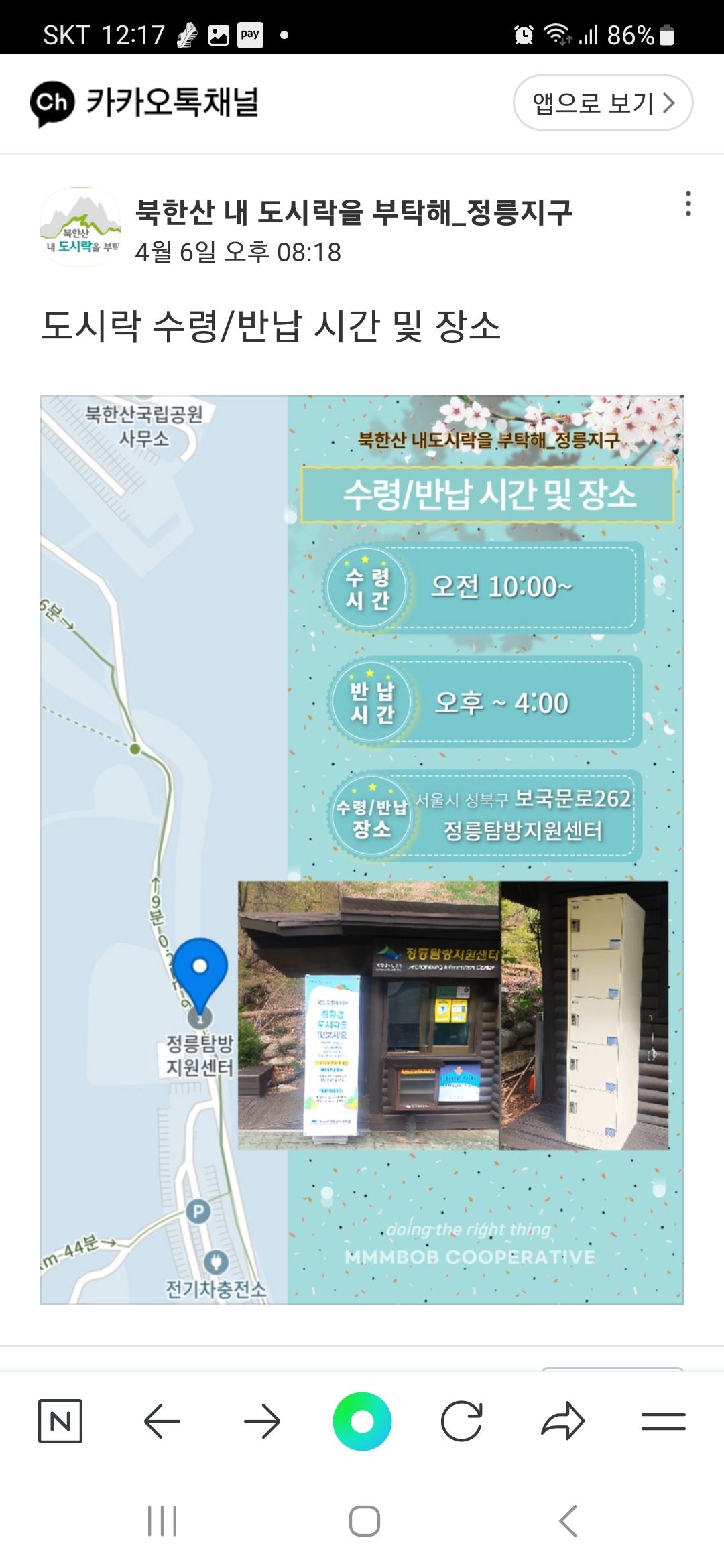 2023년 4월 10일부터 북한산 내 도시락을 부탁해_정릉지구 서비스가 시작되었습니다. 친환경 도시락 배달서비스도 이용하시고 건강 챙기고 환경까지 아끼면서 편리한 산행 다녀오시기 바랍니다.
