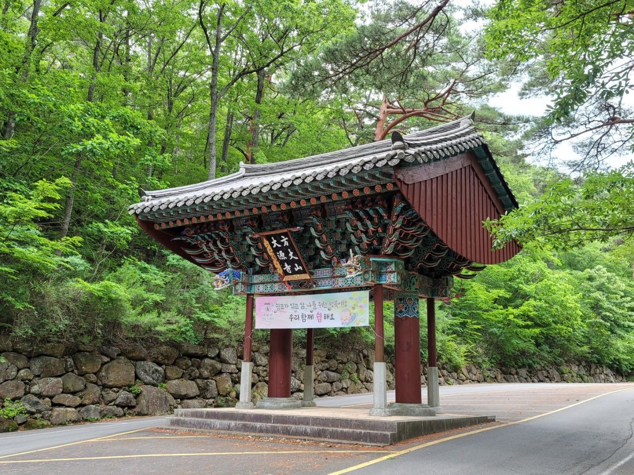 특이하게 생긴 나무문이 열려있는 대원사 입장~^^