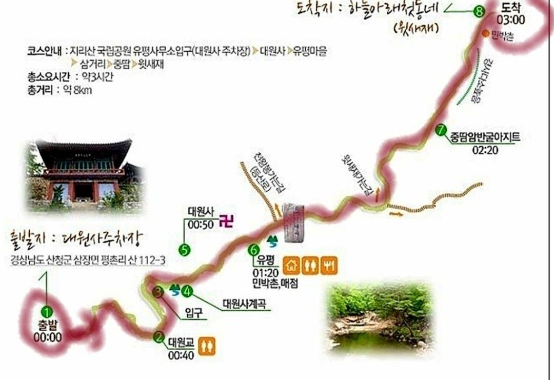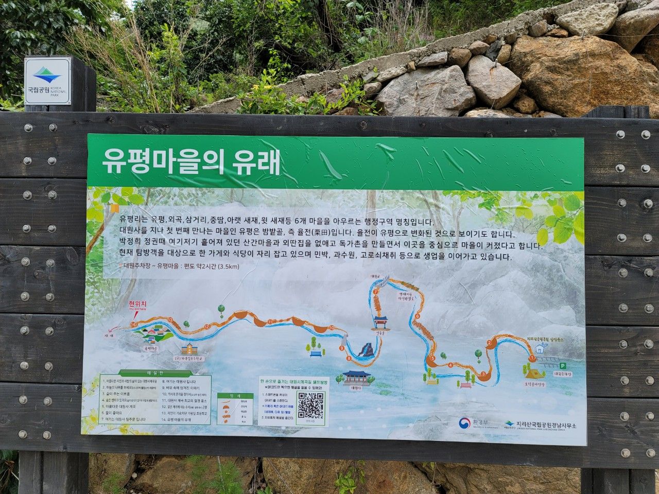 지리산 대원사 주차장을 출발해 유평마을 지나 다시 대원사 주차장으로 계곡 따라 트레킹 하는 코스였습니다. 시원한 계곡을 따라 데크길도 편리하게 설치되어 있어 힘들이지 않고 다녀올 수 있었는데요. 맛있는 비빔밥도 먹고 계곡물에 시원하게 물놀이도 할 수 있어 일석이조인 코스입니다.