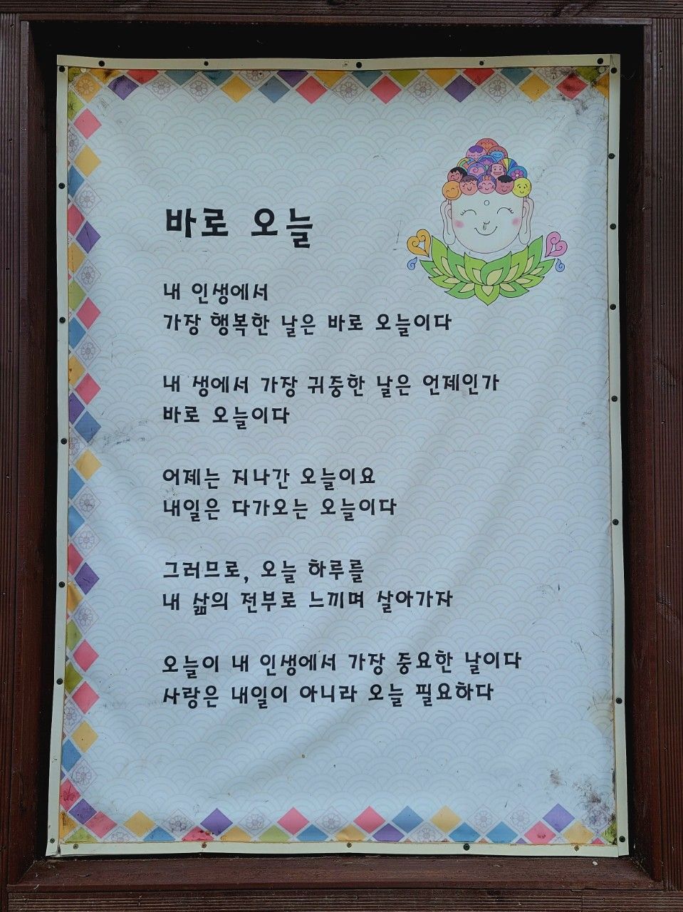'바로 오늘' 어제나 내일은 오늘이 아니니 오늘 하루를 전부로 생각하고 행복하게 살자는 말씀!! 그리고 가장 중요한 것은 사랑은 다른 날이 아닌 오늘 당장 필요하다는 말이 참 와닿습니다. 모두 오늘 행복하게 사랑하며 살아가자요~