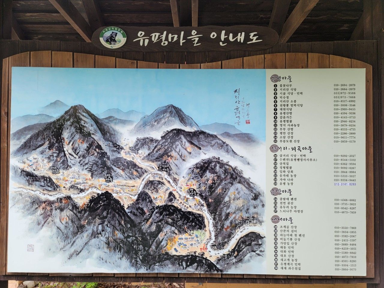 유평마을 유래도 읽어보았는데요. 흩어져 있던 산간마을이나 외딴집을 이곳으로 모으면서 커졌다고 합니다. 지금은 민박이나 식당, 과수원 등으로 생업을 이어가고 있다고 하네요~