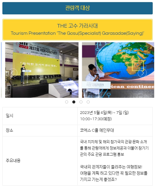 자료는 서울국제관광전 홈페이지와 코엑스 홈페이지를 참조하였습니다.