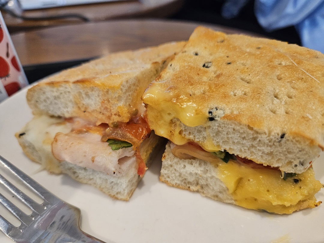 샌드위치는 빵은 바게트 정도 단단함에 소스와 햄, 치즈가 짭쪼름했는데요. 샌드위치 빵이 살짝만 부드러웠으면 좋겠더라구요~