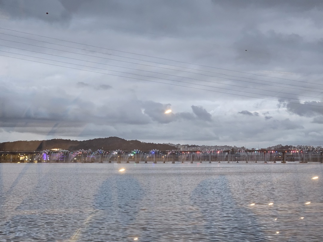 스타벅스 내부에서 보이는 반포한강대교와 한강입니다.